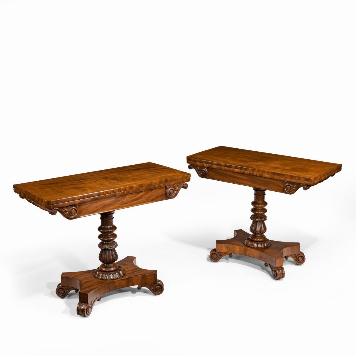 Companion Pair of William IV Flame Mahogany Card Tables (1 of 13)