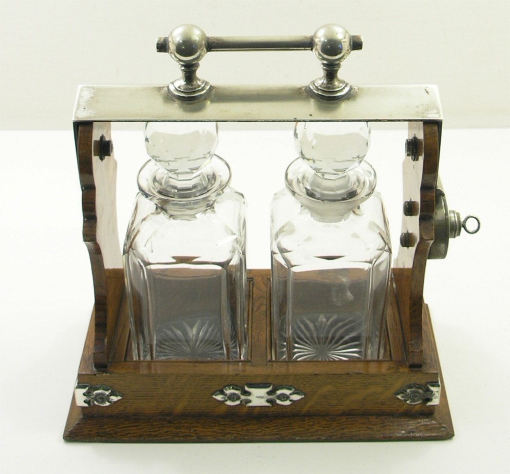 Complete Edwardian Oak Two Decanter Tantalus c.1910