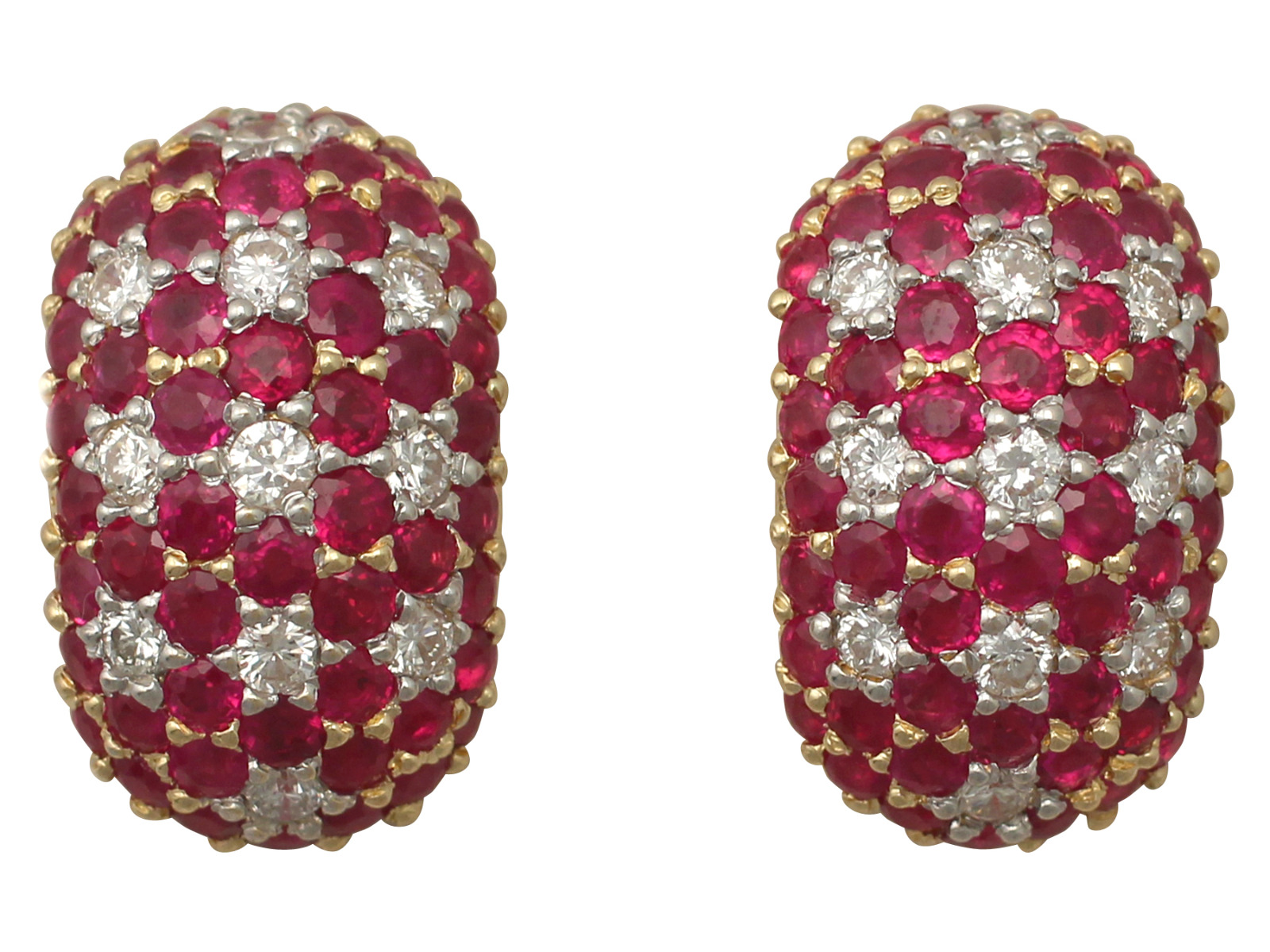 Contemporary 5.66ct Ruby & 1.48ct Diamond, 18ct Yellow Gold Earrings (1 of 1)