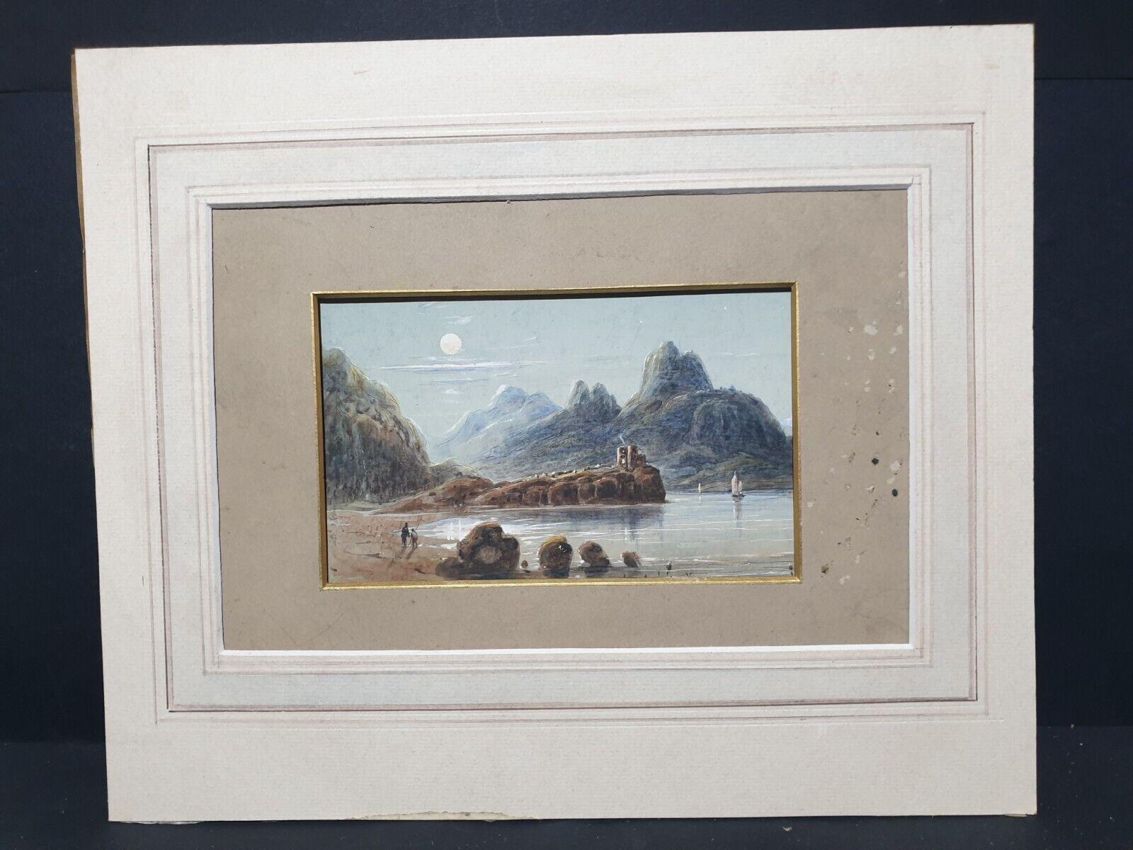 Continental Castle Seascape Gouache Circa 1820 Extremely High Quality