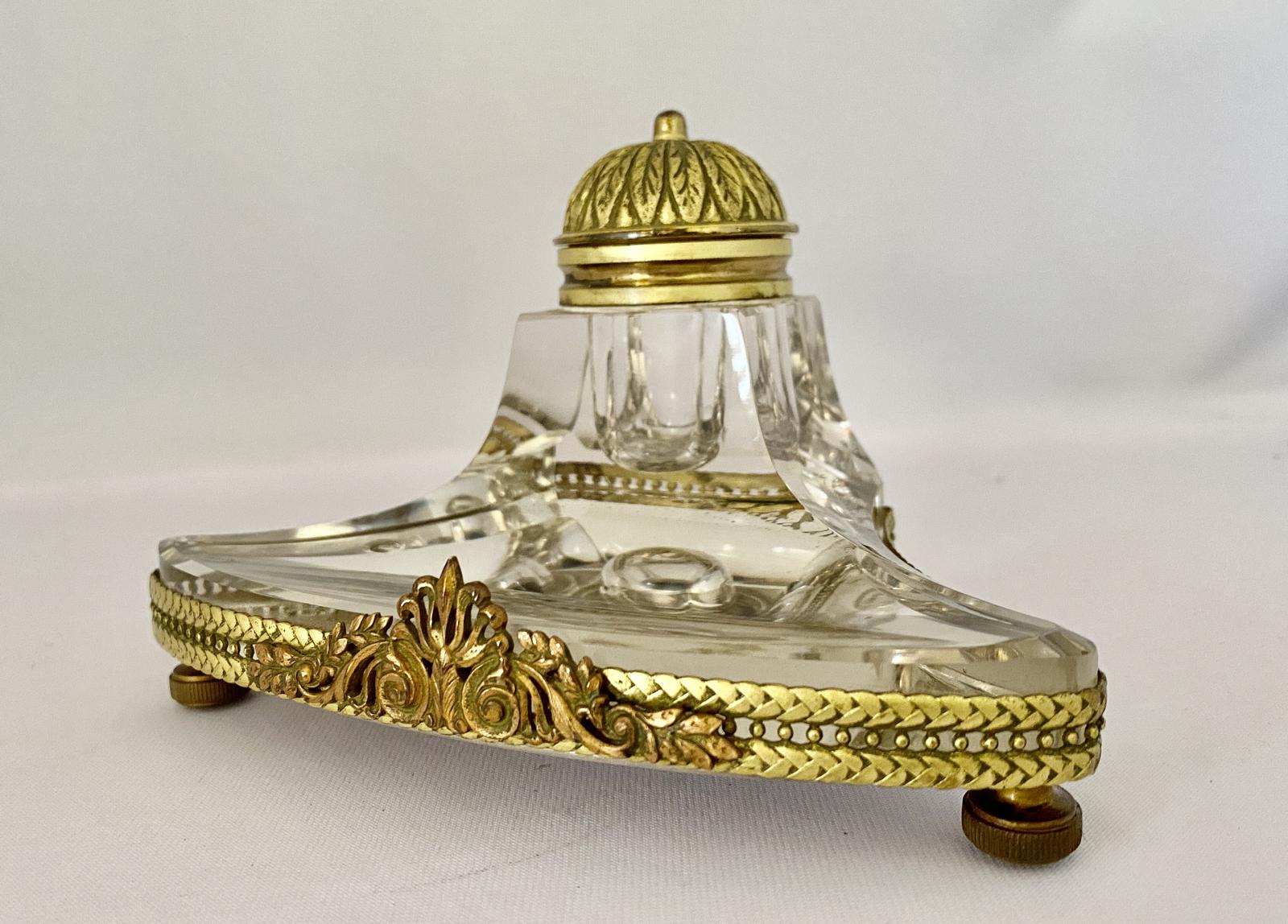 Continental Gilded Glass Inkwell c.1920