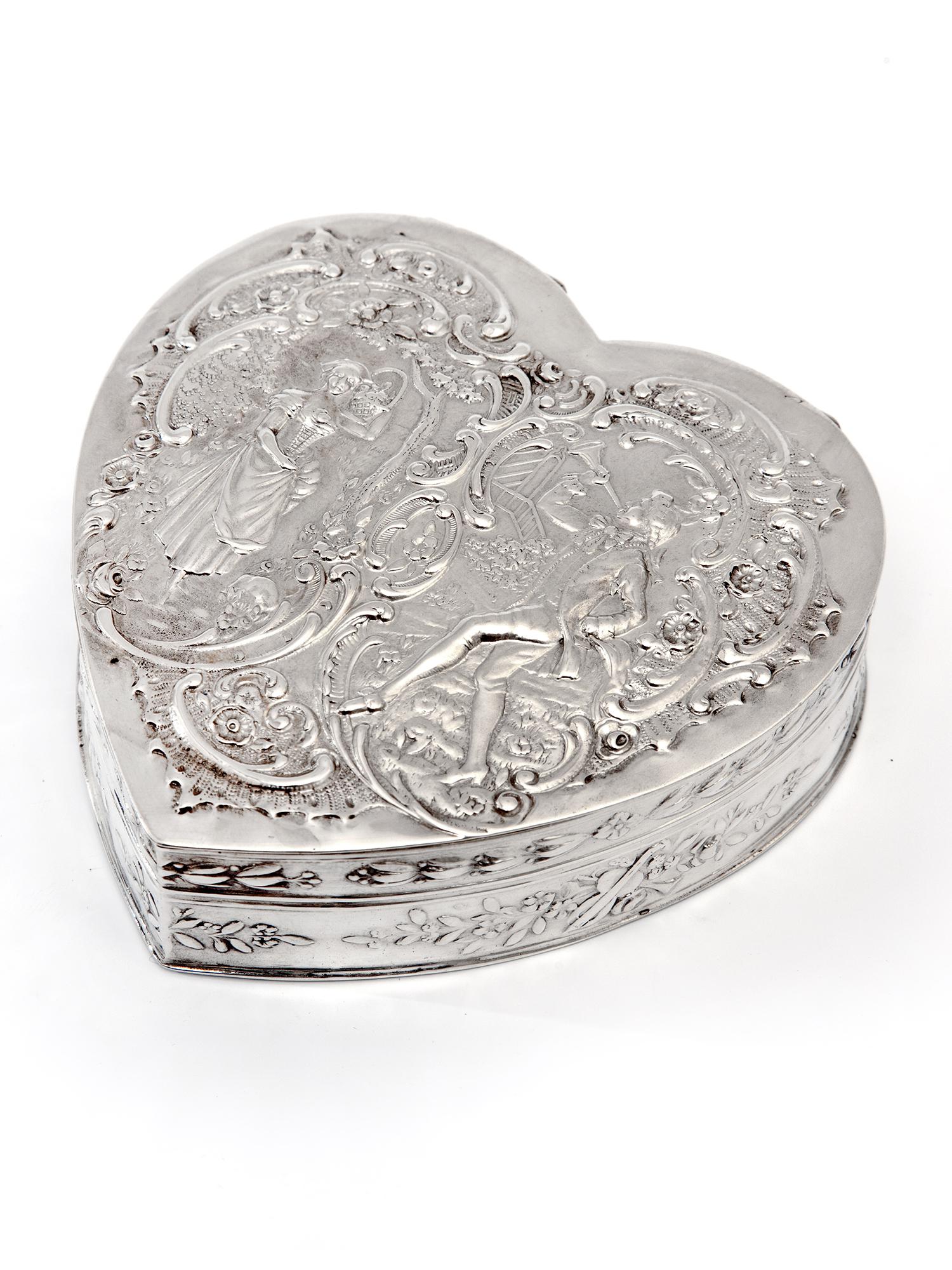 Continental Heart Shape 800 Grade Silver Jewellery or Trinket Box (1 of 4)