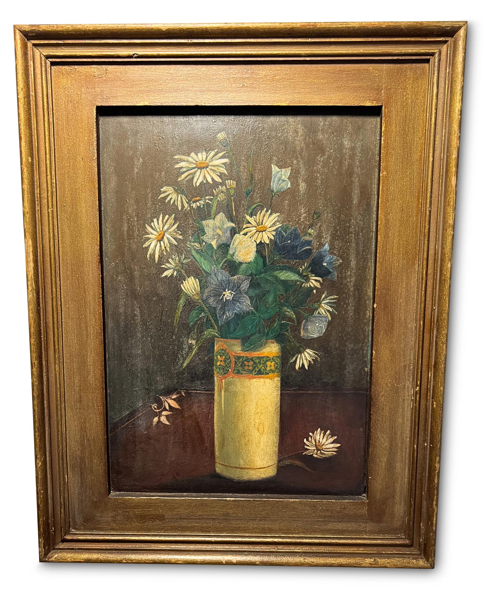Continental School Oil on Panel Still Life of Oxeye Daisies in a Vase