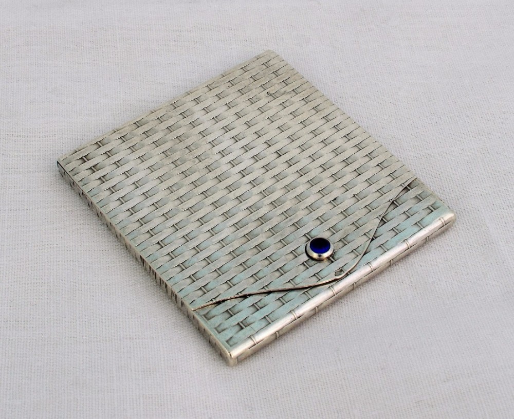 Continental Silver Basket Weave Stamp Case Sapphire Clasp Austria-Hungary (1 of 1)