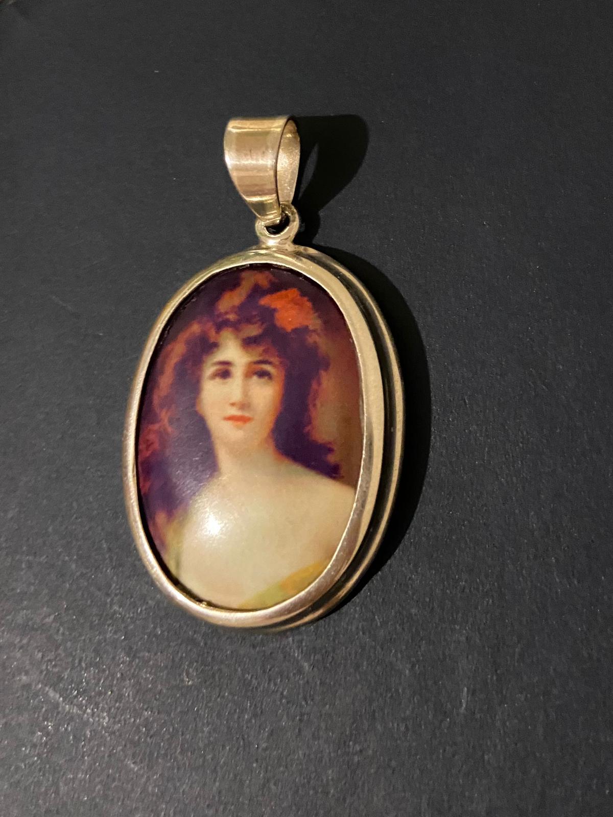 Continental Silver & Enamel Girl Pendant 925