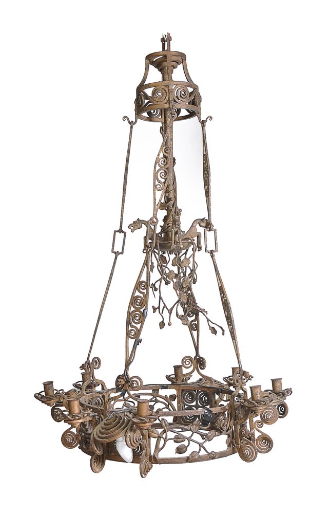 Continental Wrought Iron Chandelier c.1900 (1 of 3)