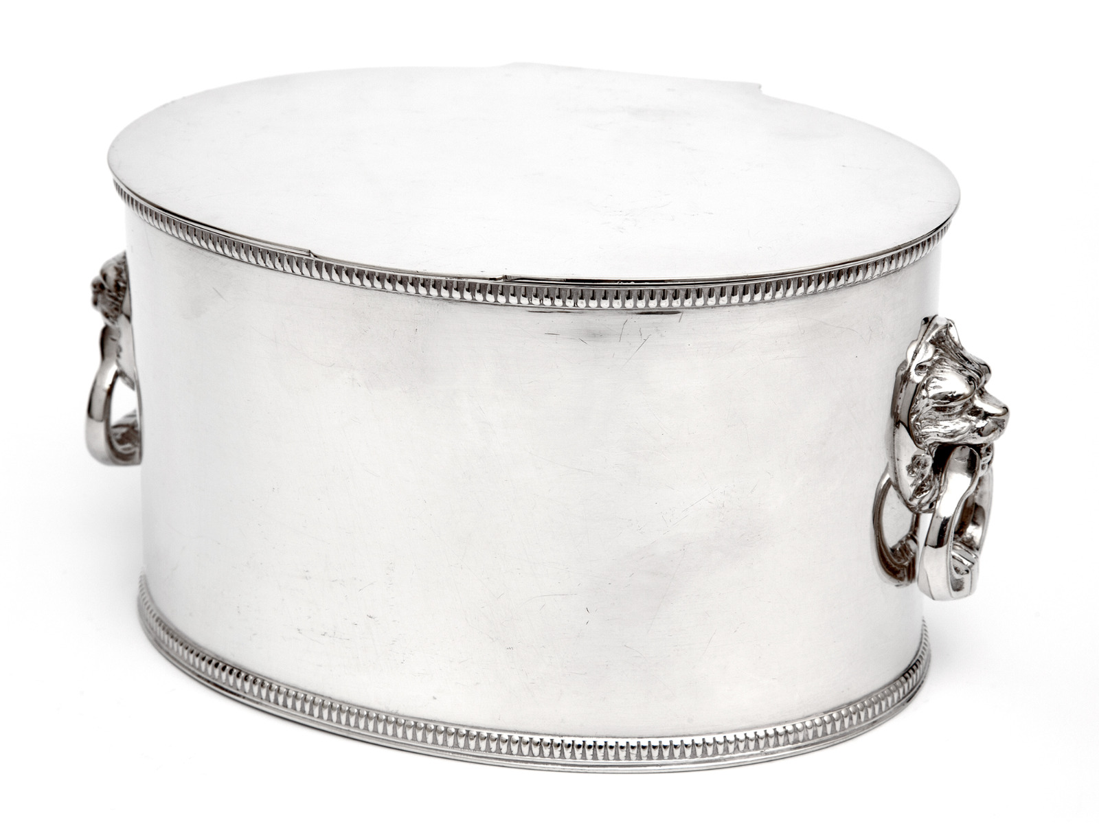 Cooper Brothers Oval Silver Plated Biscuit or Trinket Box with Lion & Loop Handles