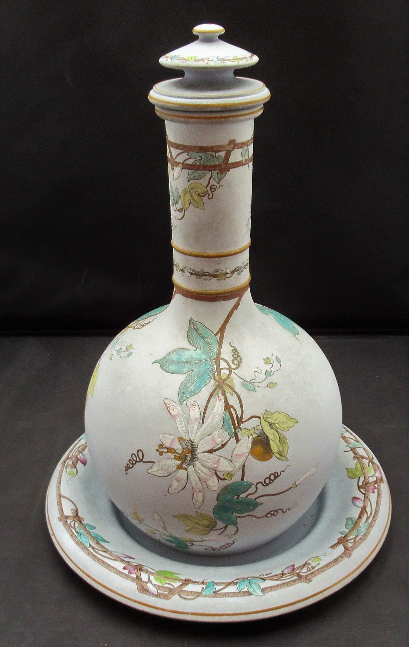 Copeland Late Spode Covered Jar and Stand Painted with Passion Flower c.1850