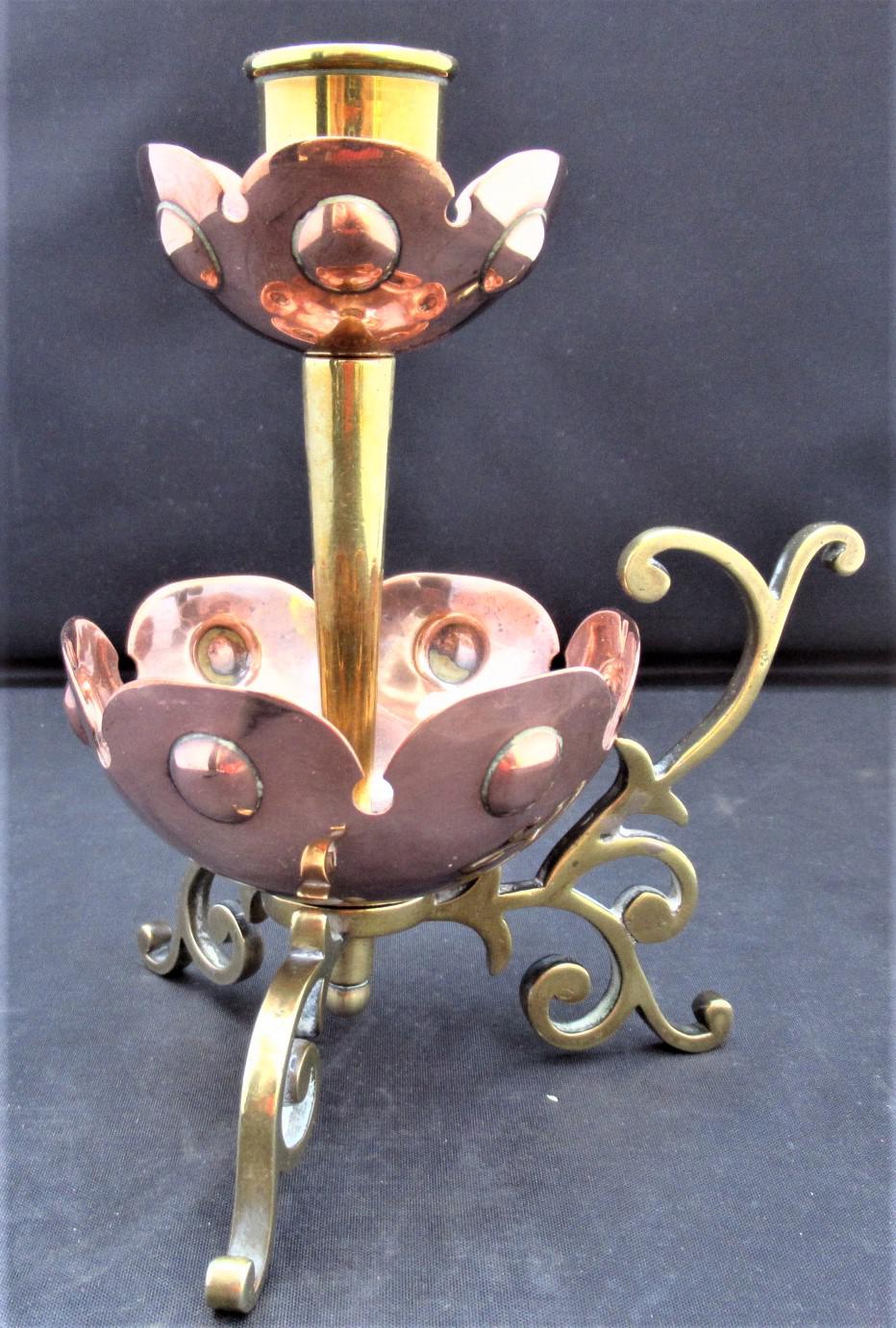 Copper and brass candlestick, manner of Christopher Dresser for Benham & Froud, c1880