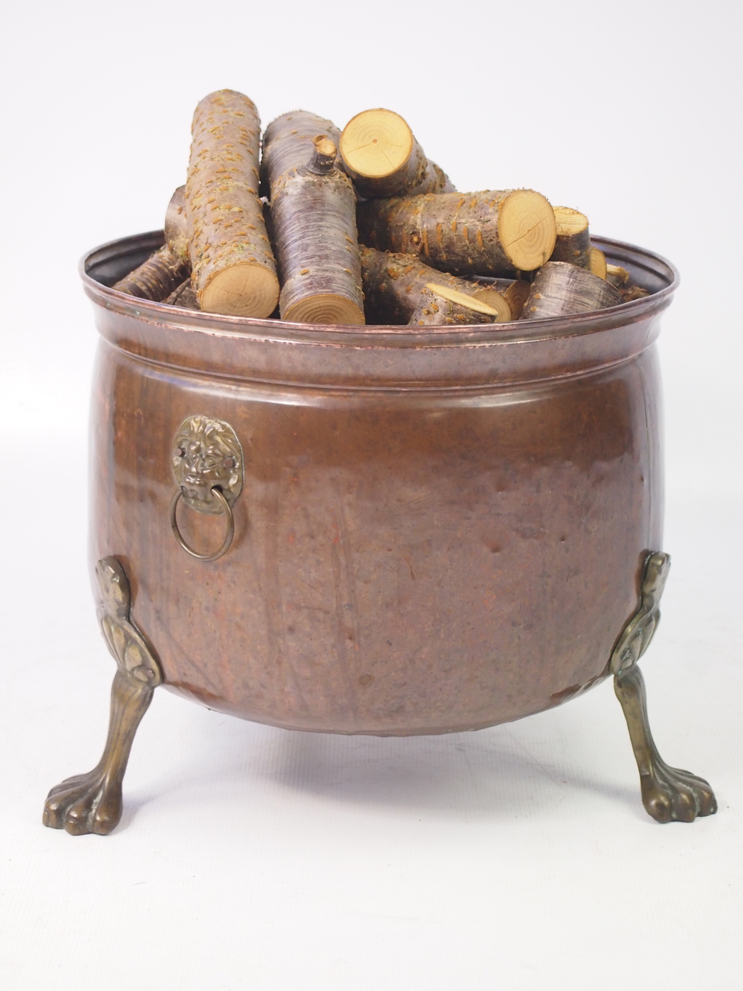 Copper & Brass Log Bin with Lions Paw Feet (1 of 1)