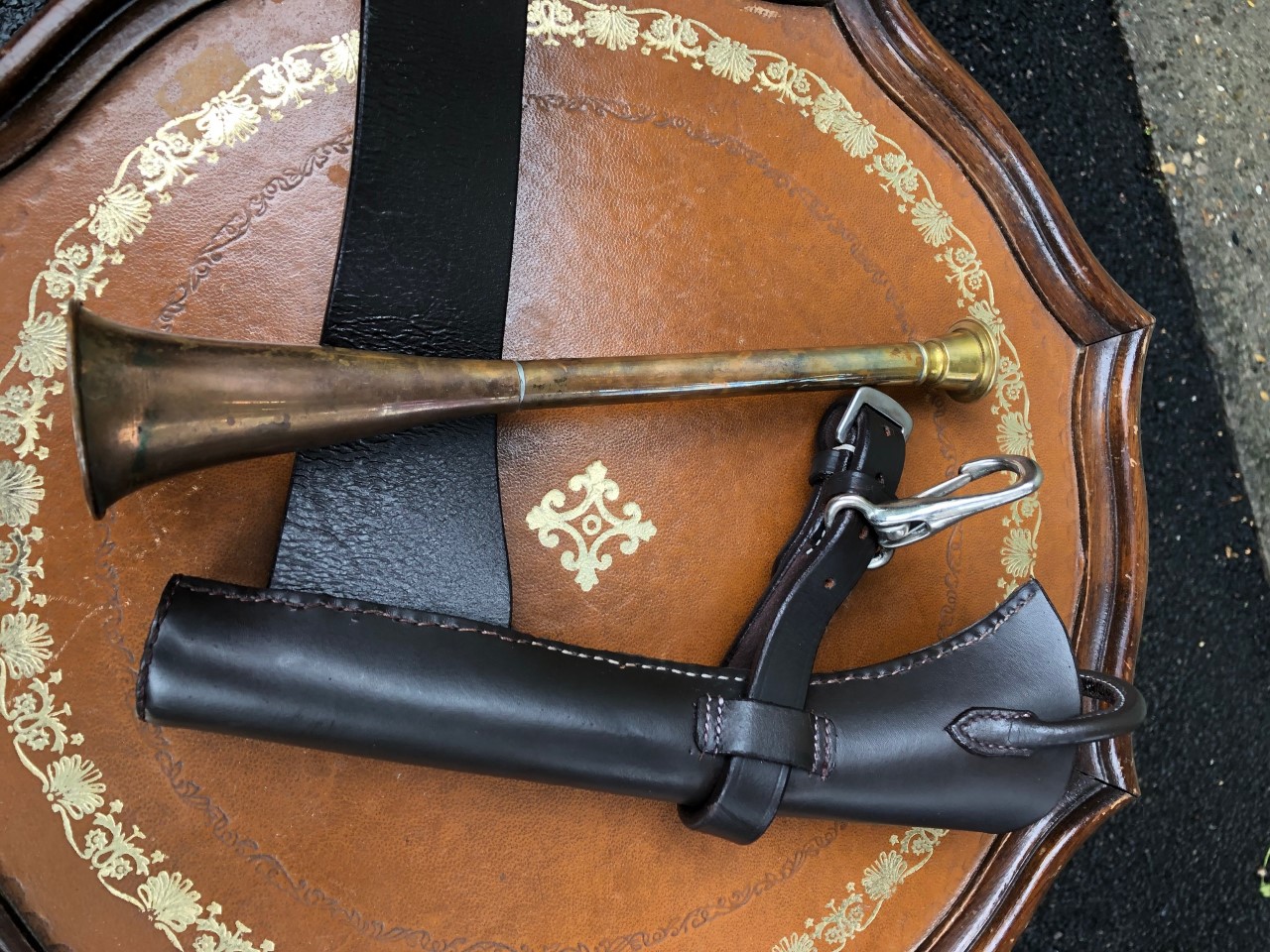 Copper Hunting Horn in Leather Case