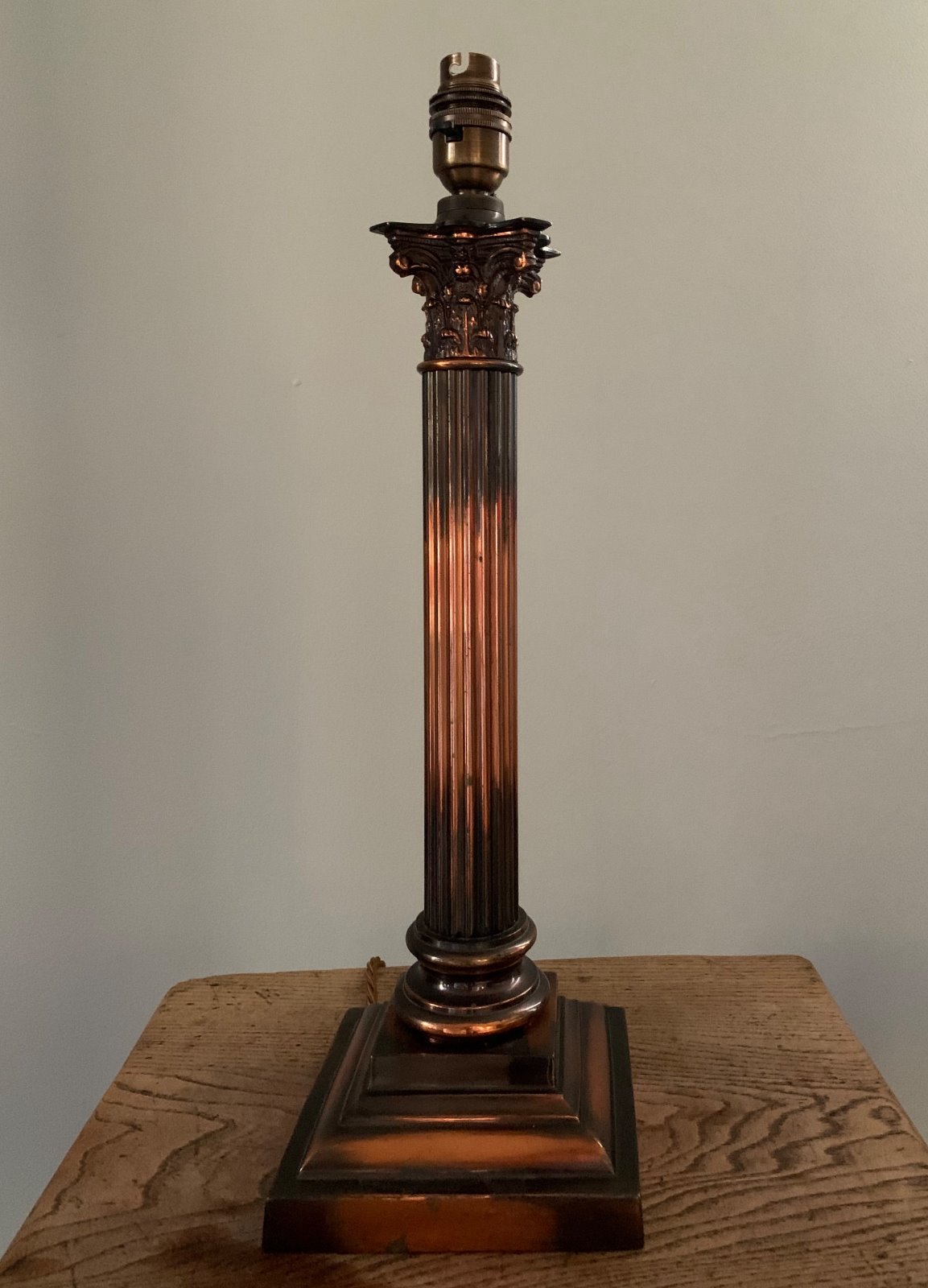 Coppered Brass Corinthian Table Lamp; Rewired & Pat Tested