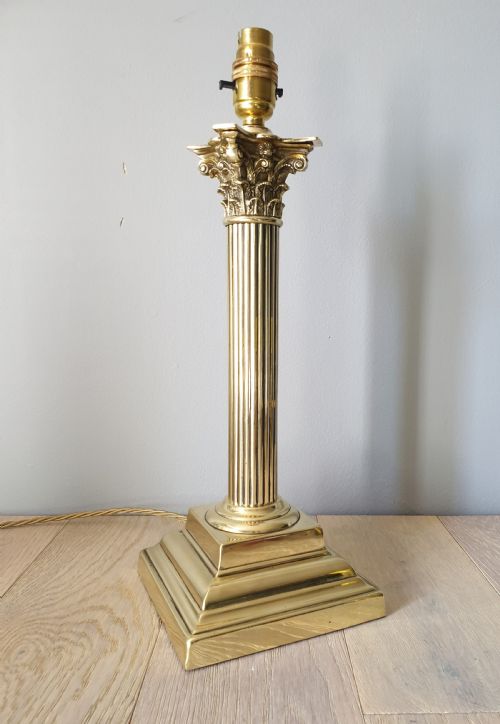 Corinthian Column Brass Table Lamp, Rewired & Pat Tested c.1910