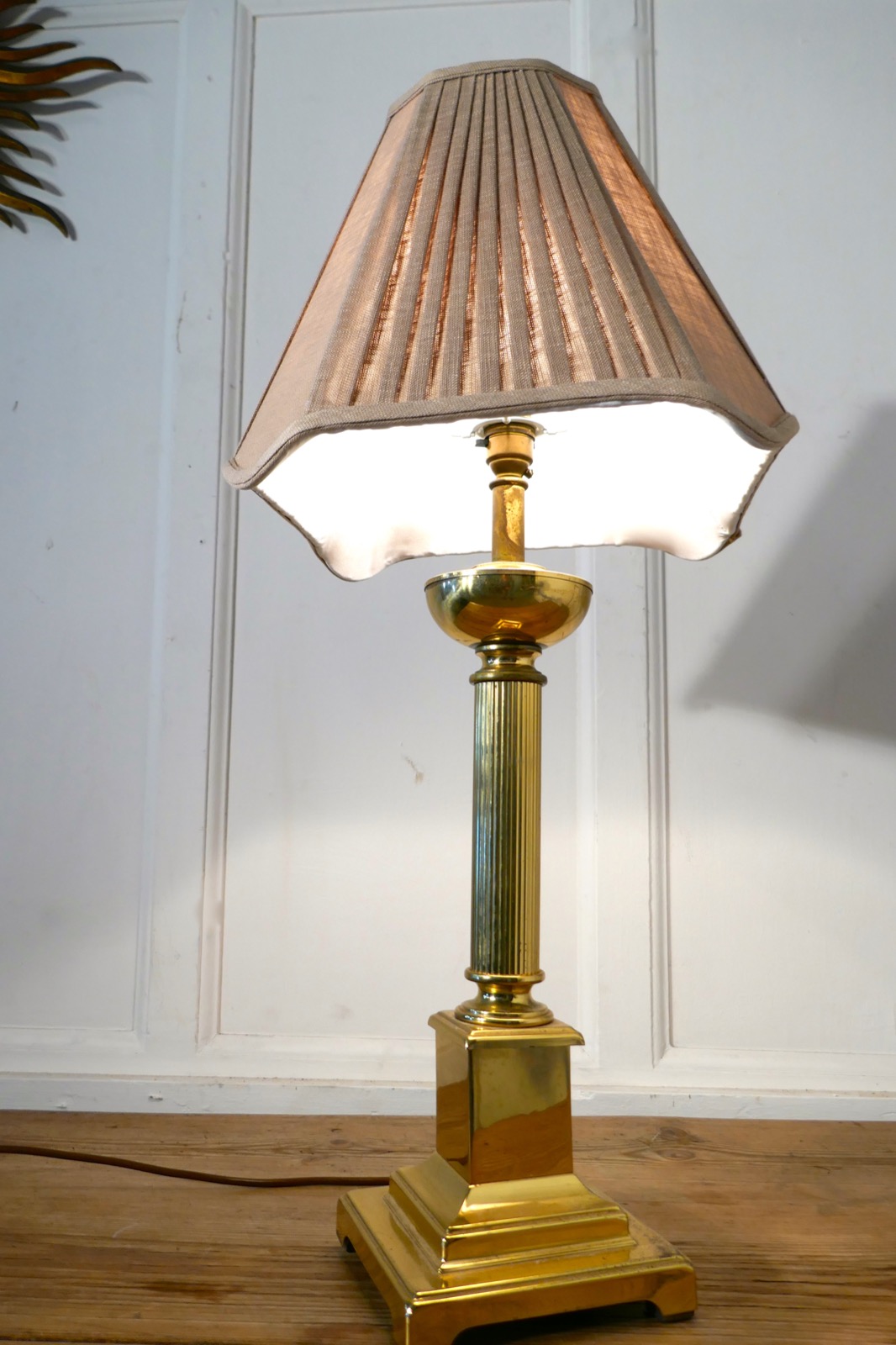 Corinthian Column Brass Table Lamp with Pleated Linen Shade