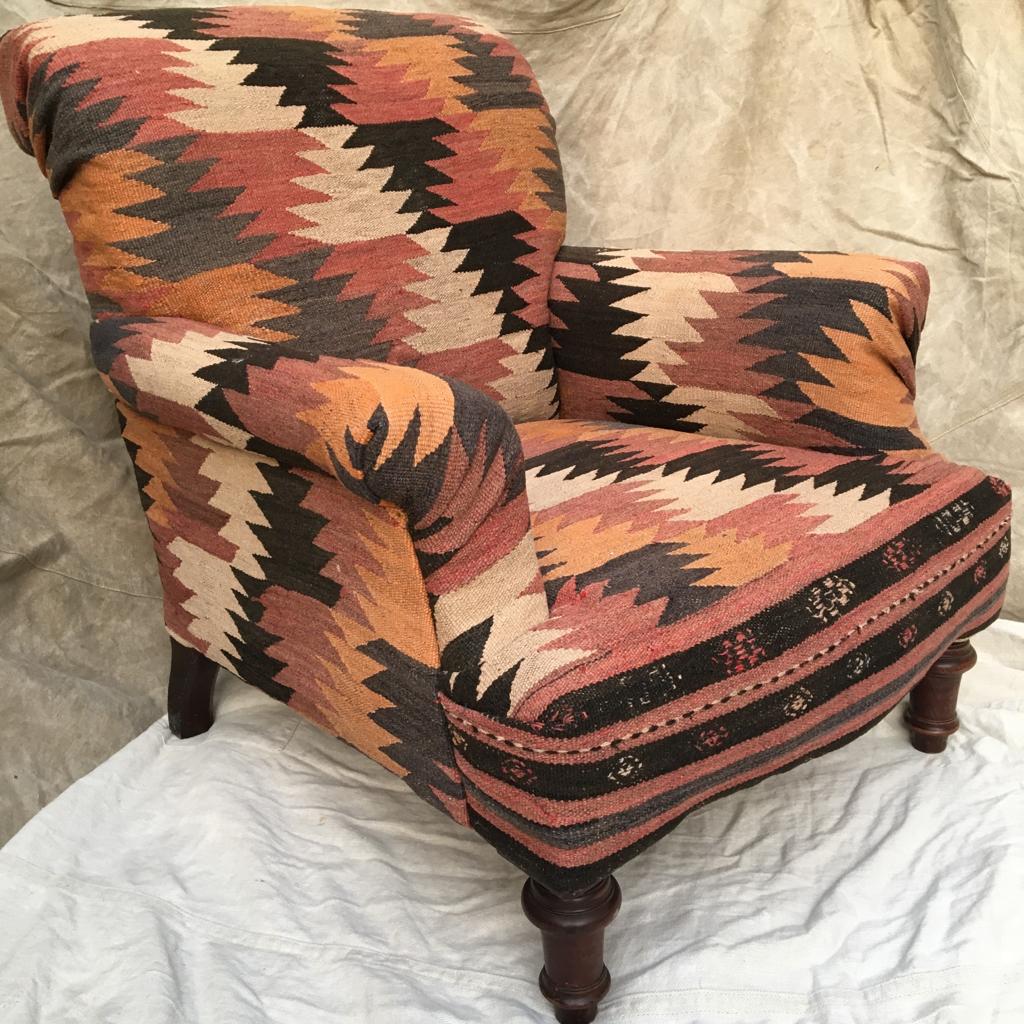 Cornelius V Smith Club Chair in Vintage Pera Kilim Fabric