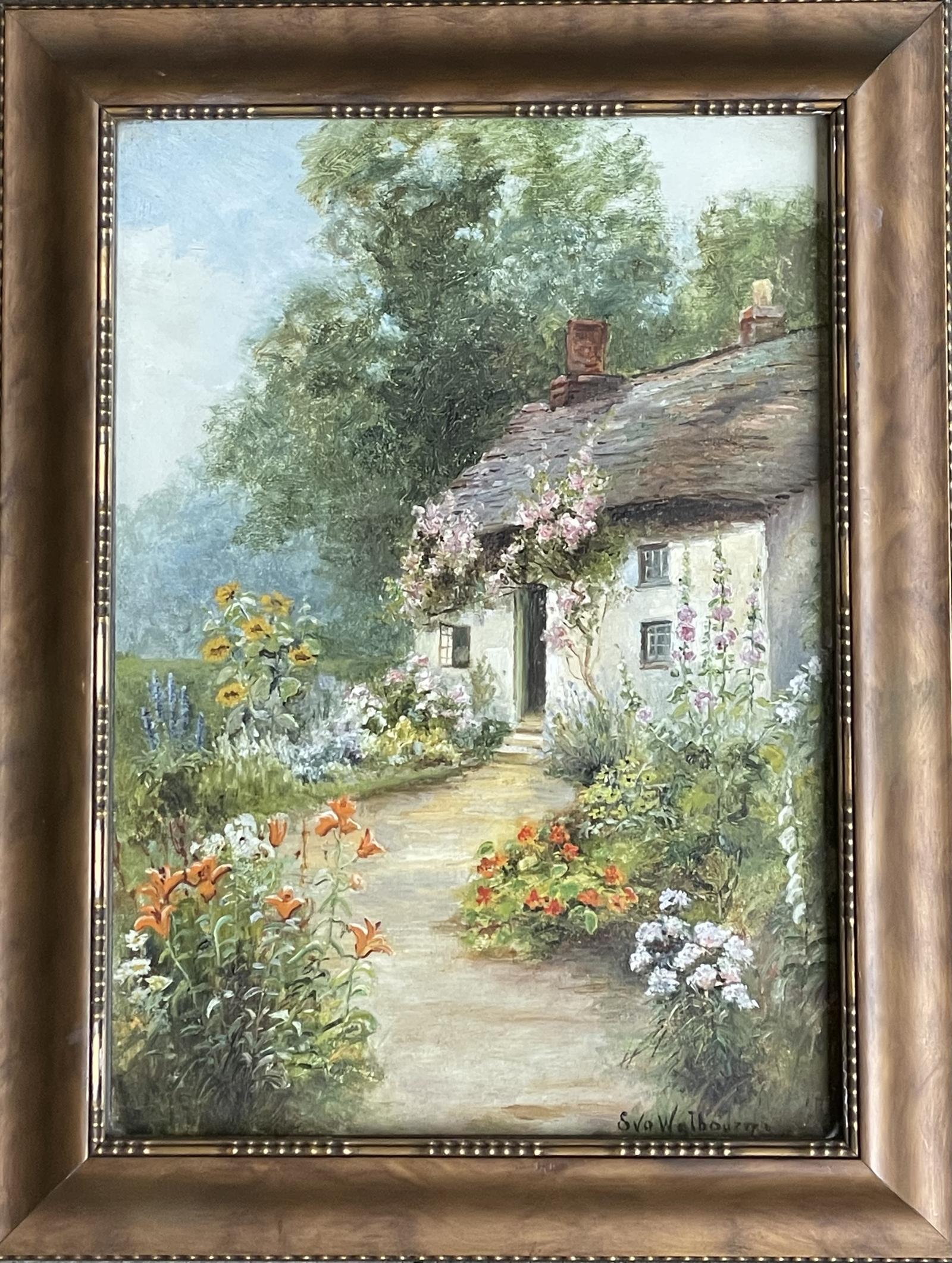 This Cottage Garden Oil Painting By Ernest Walbourn is located in Isle of Man