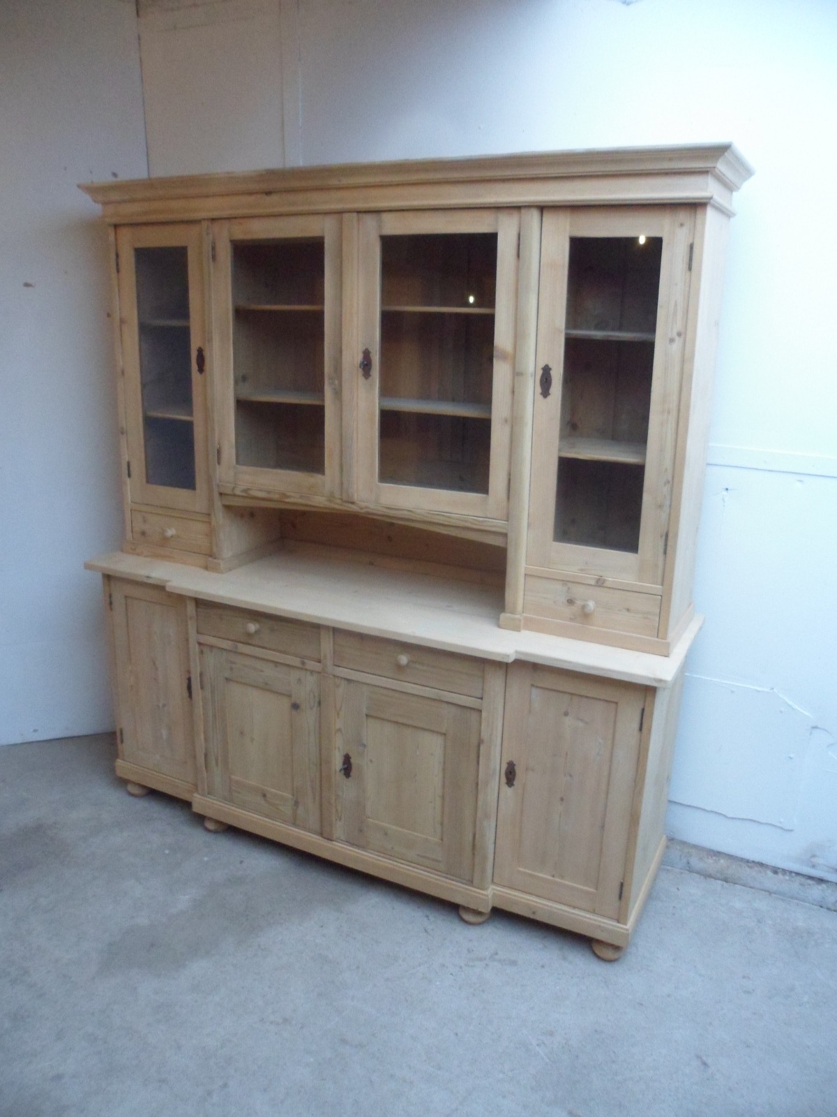 Cottage Large 4 Door Old Pine Breakfront Kitchen Dresser to paint / wax