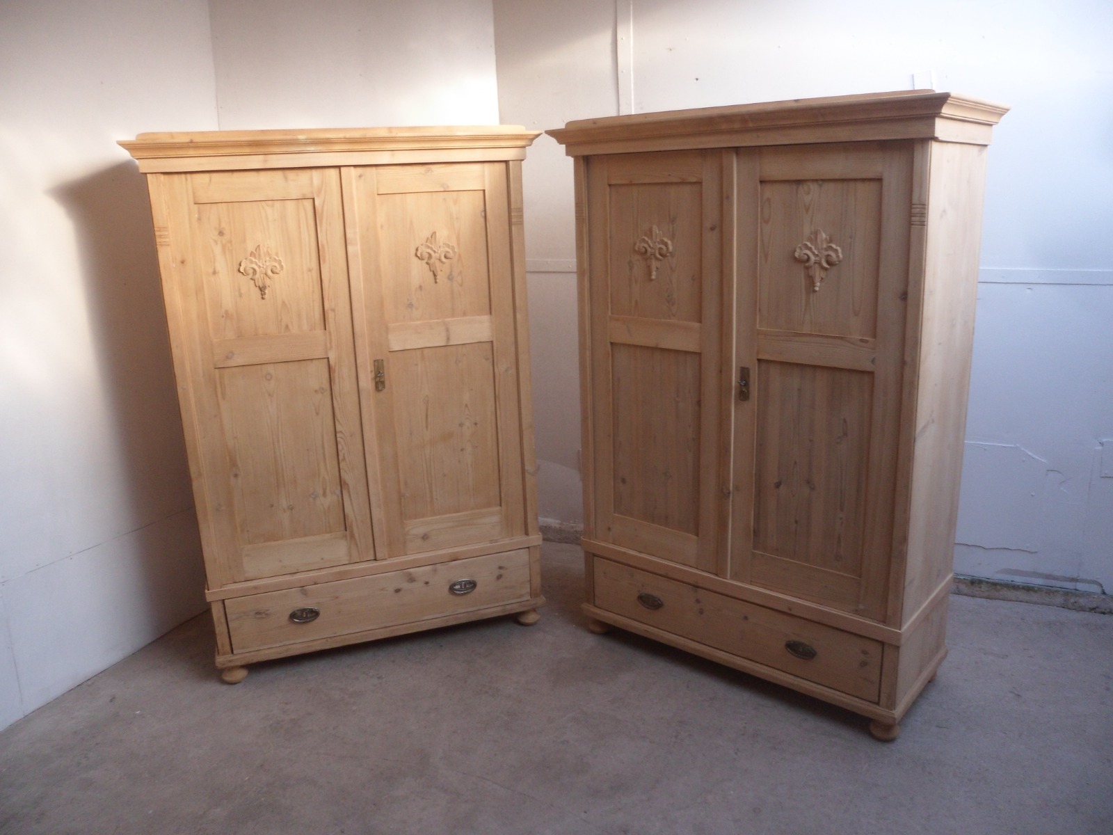 Cottage Low Pair of Antique Pine Motif Knockdown Wardrobes to Wax / Paint