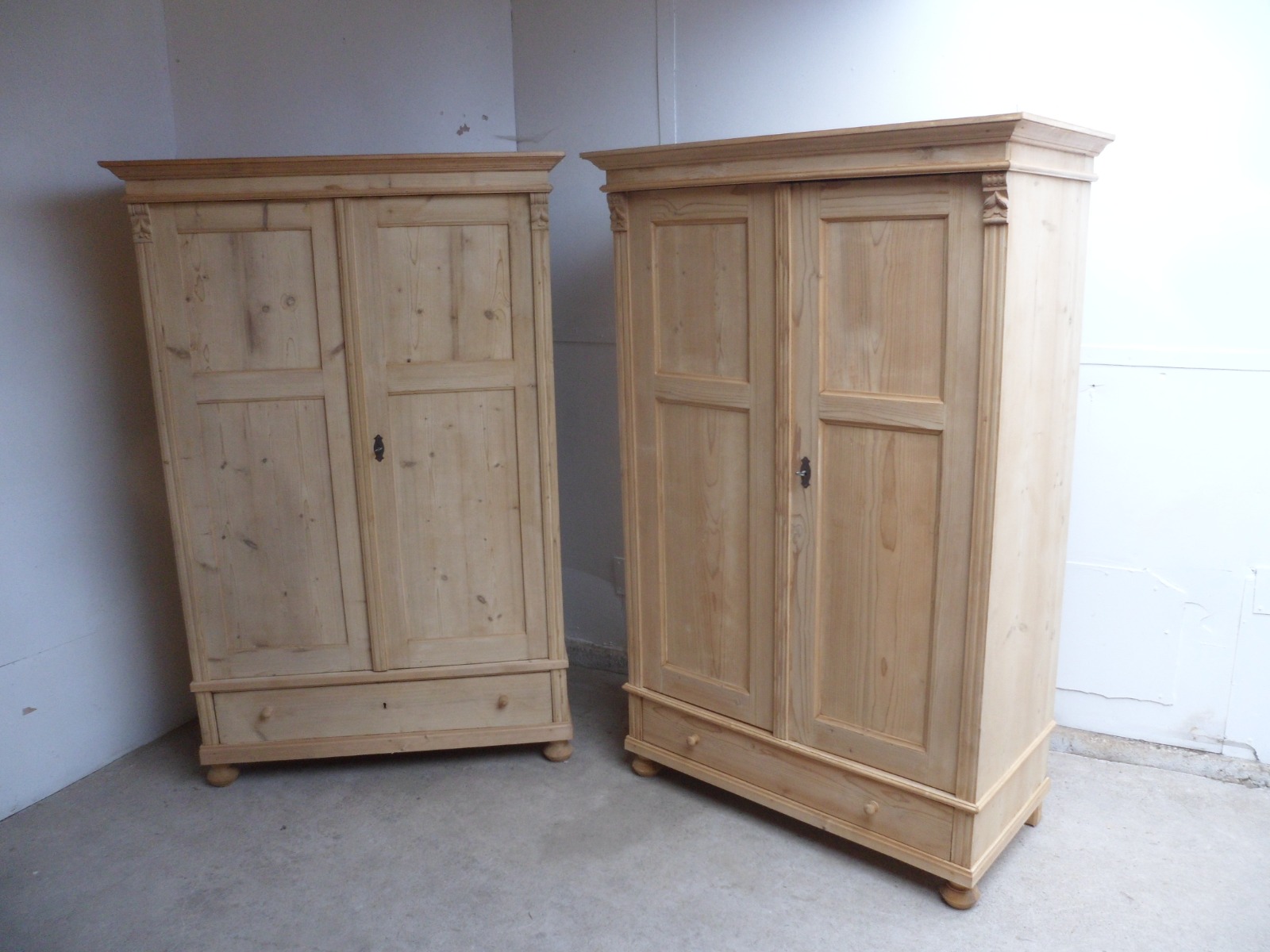 Cottage Style Low Pair of Old Pine Knockdown Wardrobes to wax / paint