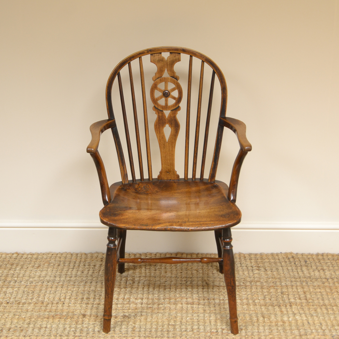 Country Georgian Elm Wheel Back Antique Windsor Chair