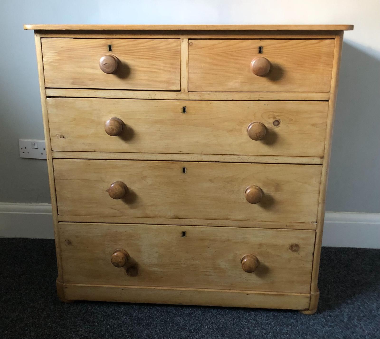 Country Made Pine Chest of Five Drawers