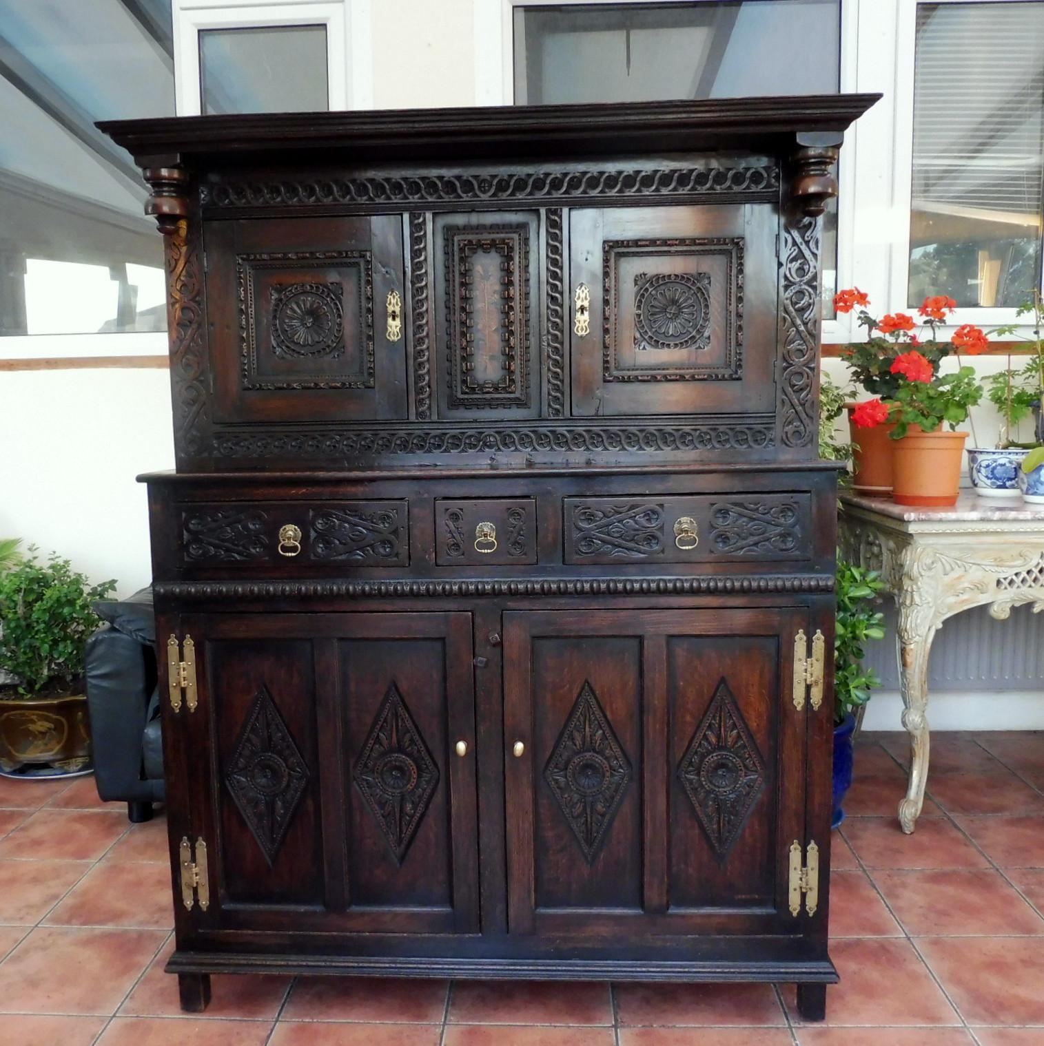 Country Oak Marquetry Inlaid Court Cupboard 1770