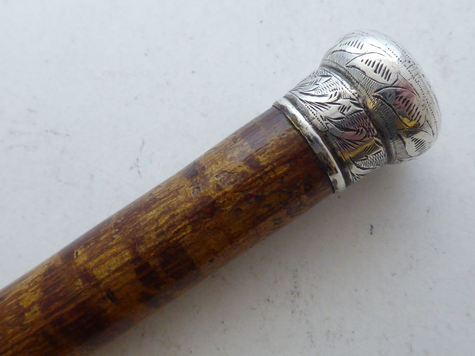 Country Walking Stick Cane 1890 Hallmarked Solid Silver Pommel Birch Wood Shaft