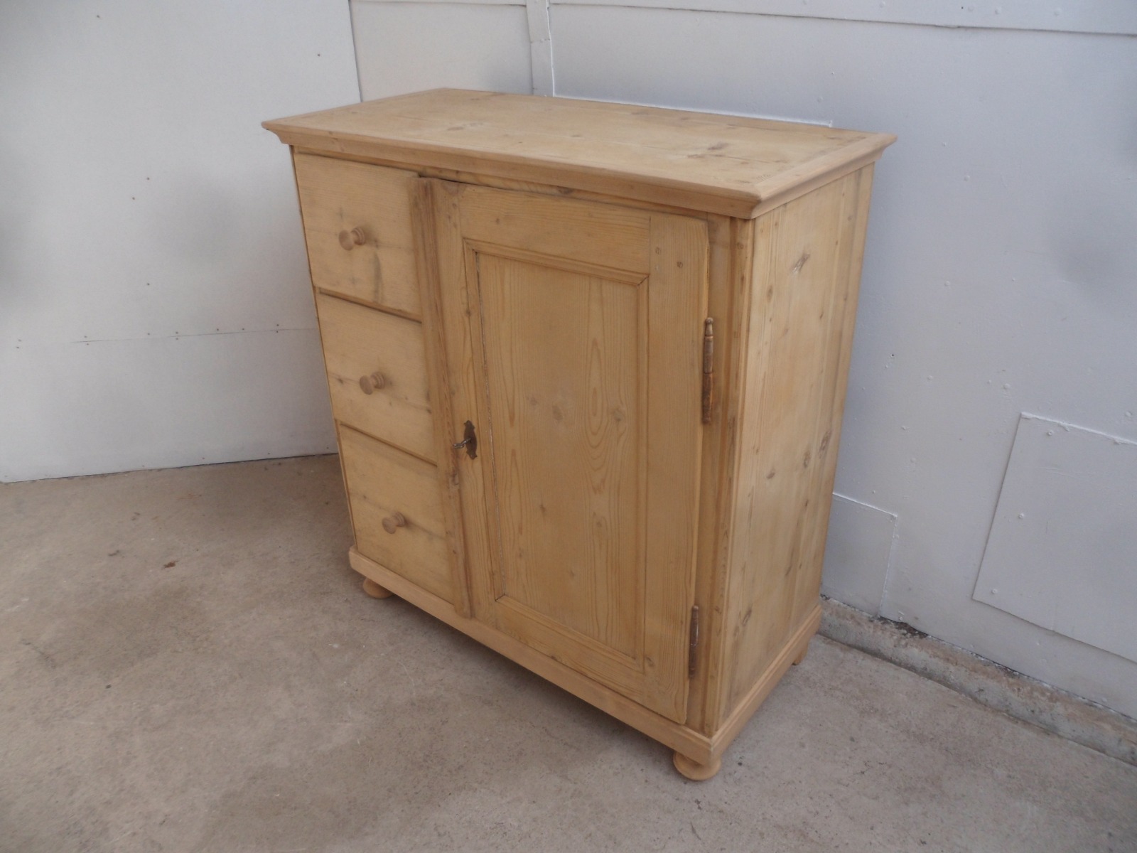 Cracking 1 Door 3 Drawer Antique Pine Kitchen / Storage Cupboard to wax / paint