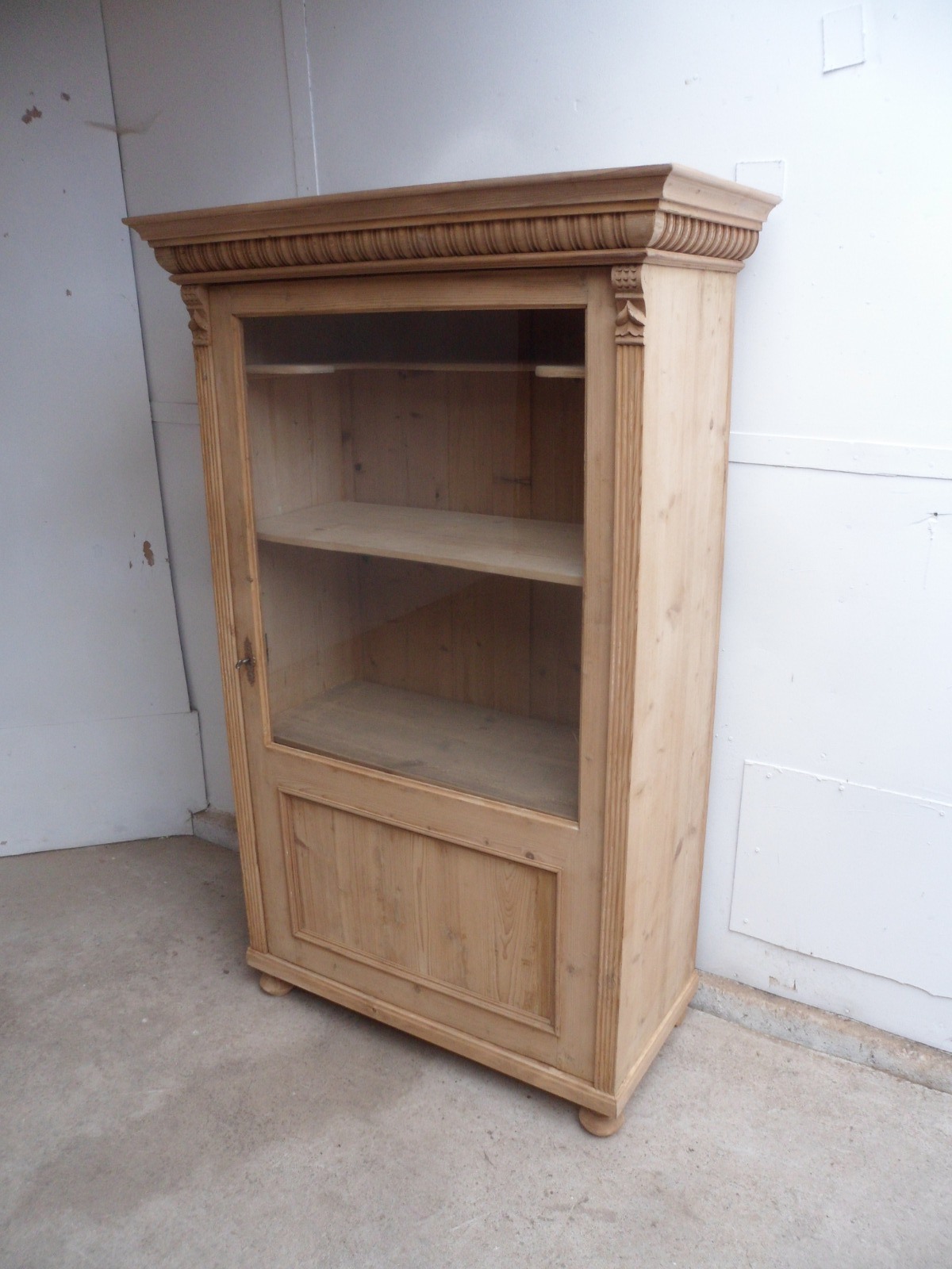 Cracking Carved Victorian Antique Pine 1 Door Display Cabinet to wax / paint