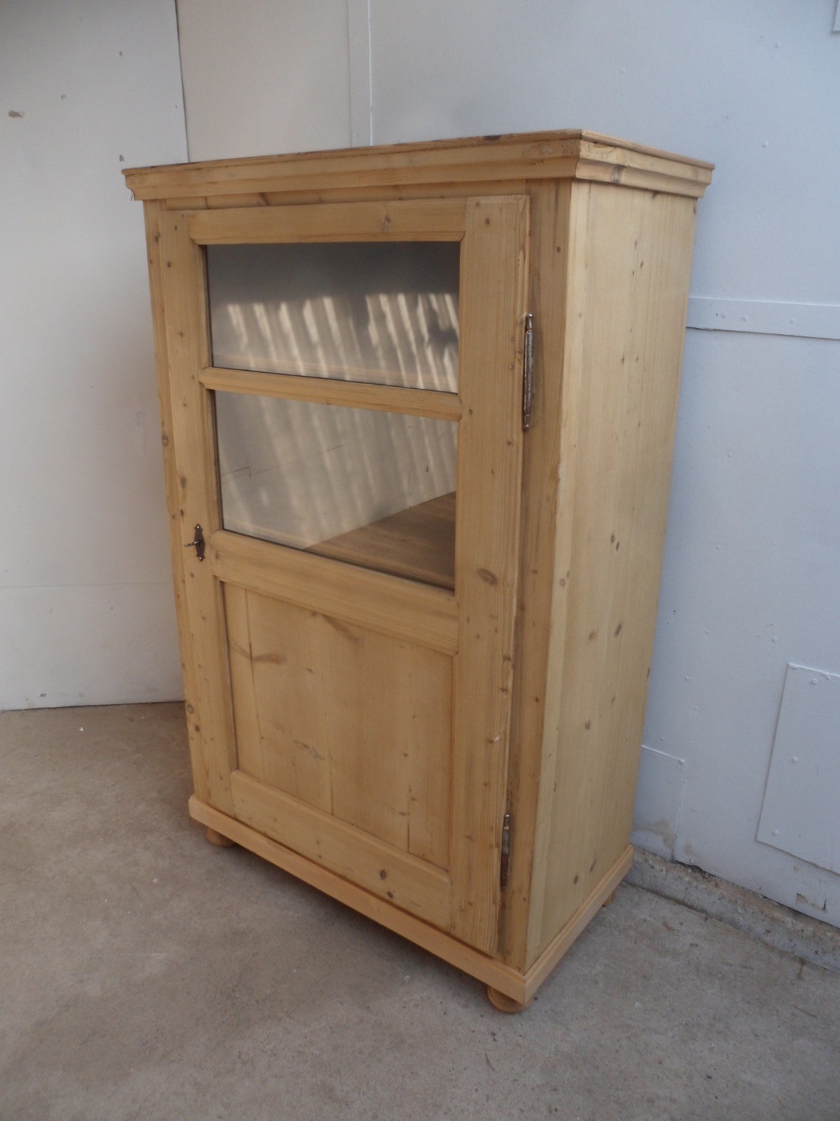 Cracking Early Victorian Small Antique Pine Display Cabinet to paint / wax
