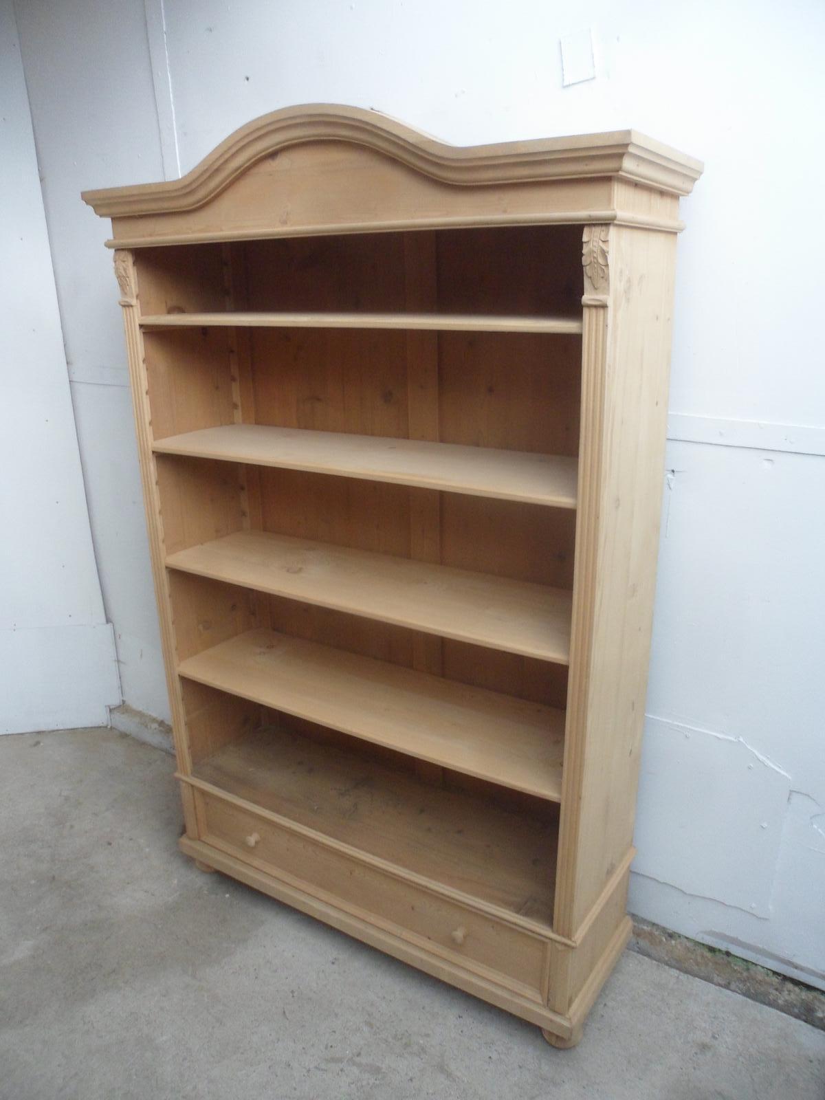 Cracking Large Antique Pine Arch Top Adjustable Bookshelf to wax / paint