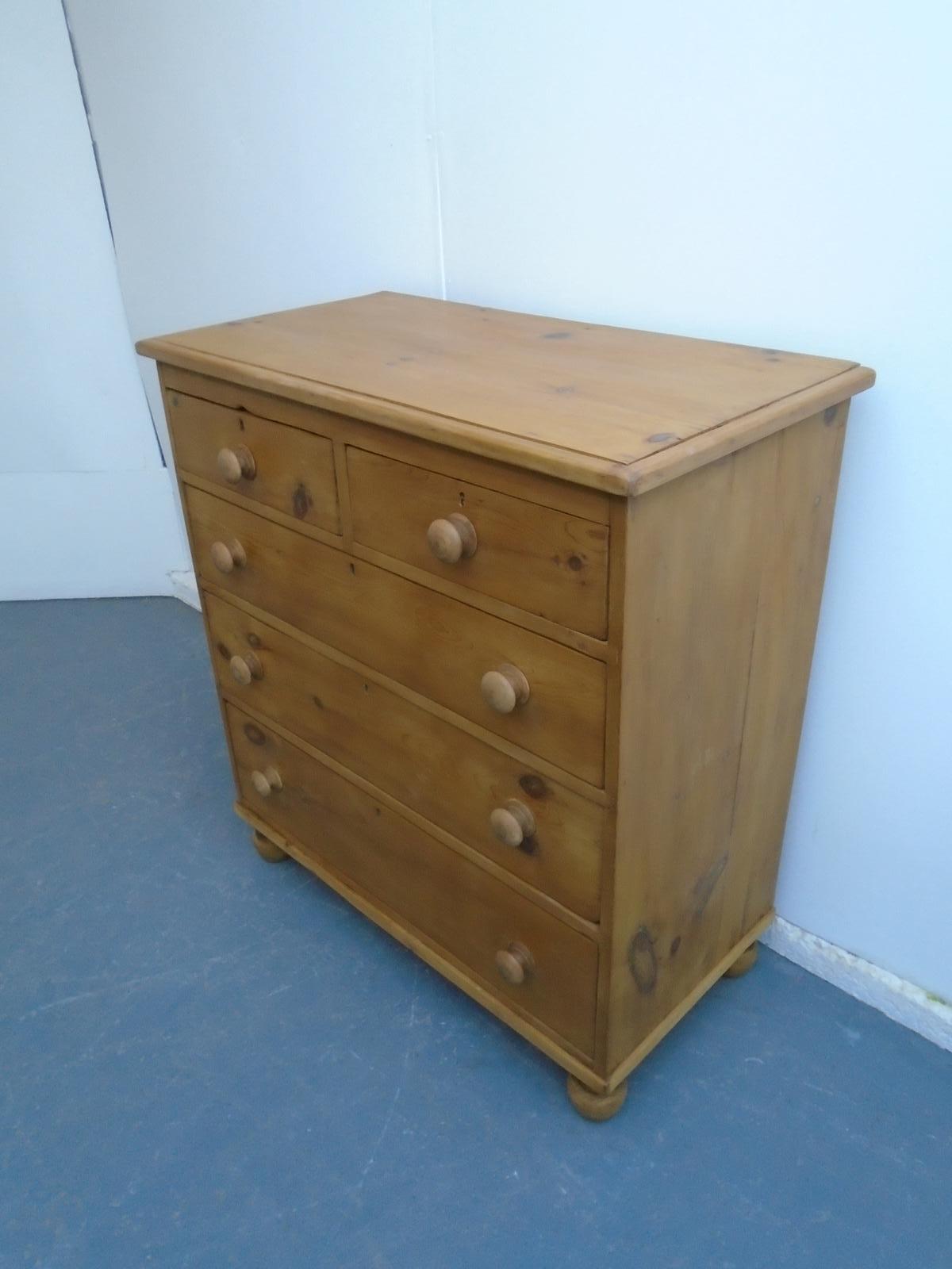 Cracking Narrow Victorian Antique Pine Waxed 5 Drawer Chest of Drawers
