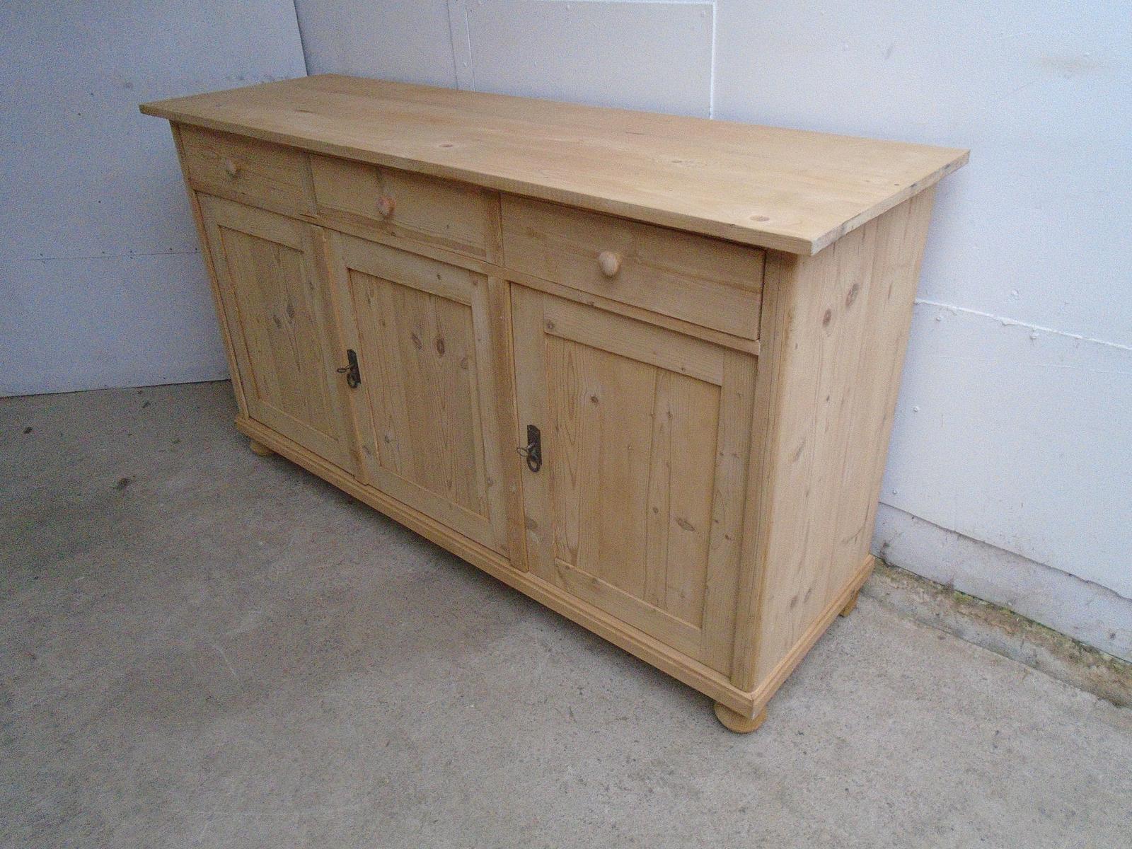 Cracking Plain Pine 3 Door Kitchen Dresser Base to wax / paint