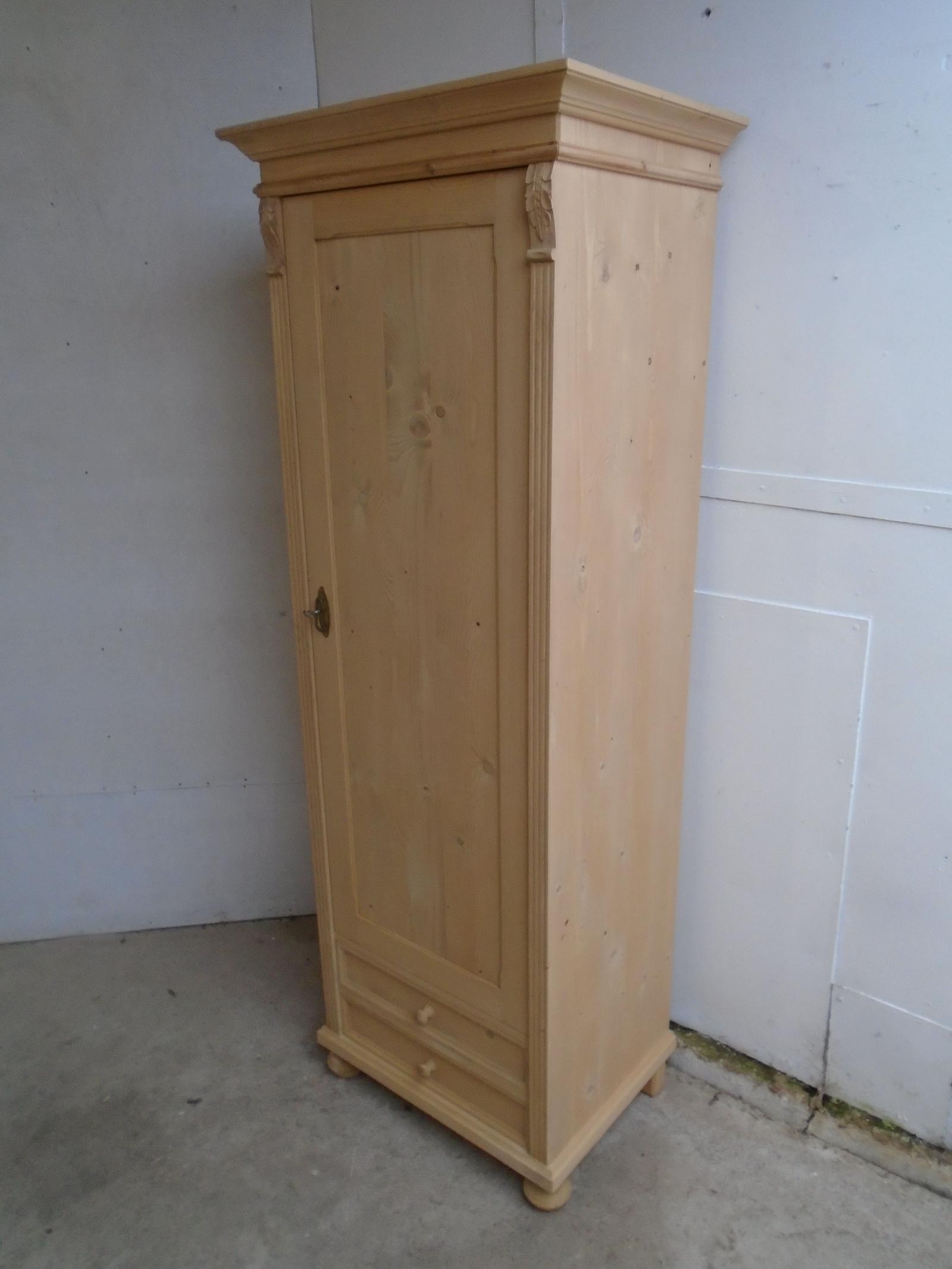 Cracking Tall 1 Door 2 Drawer Antique Pine Child's Wardrobe to wax / paint