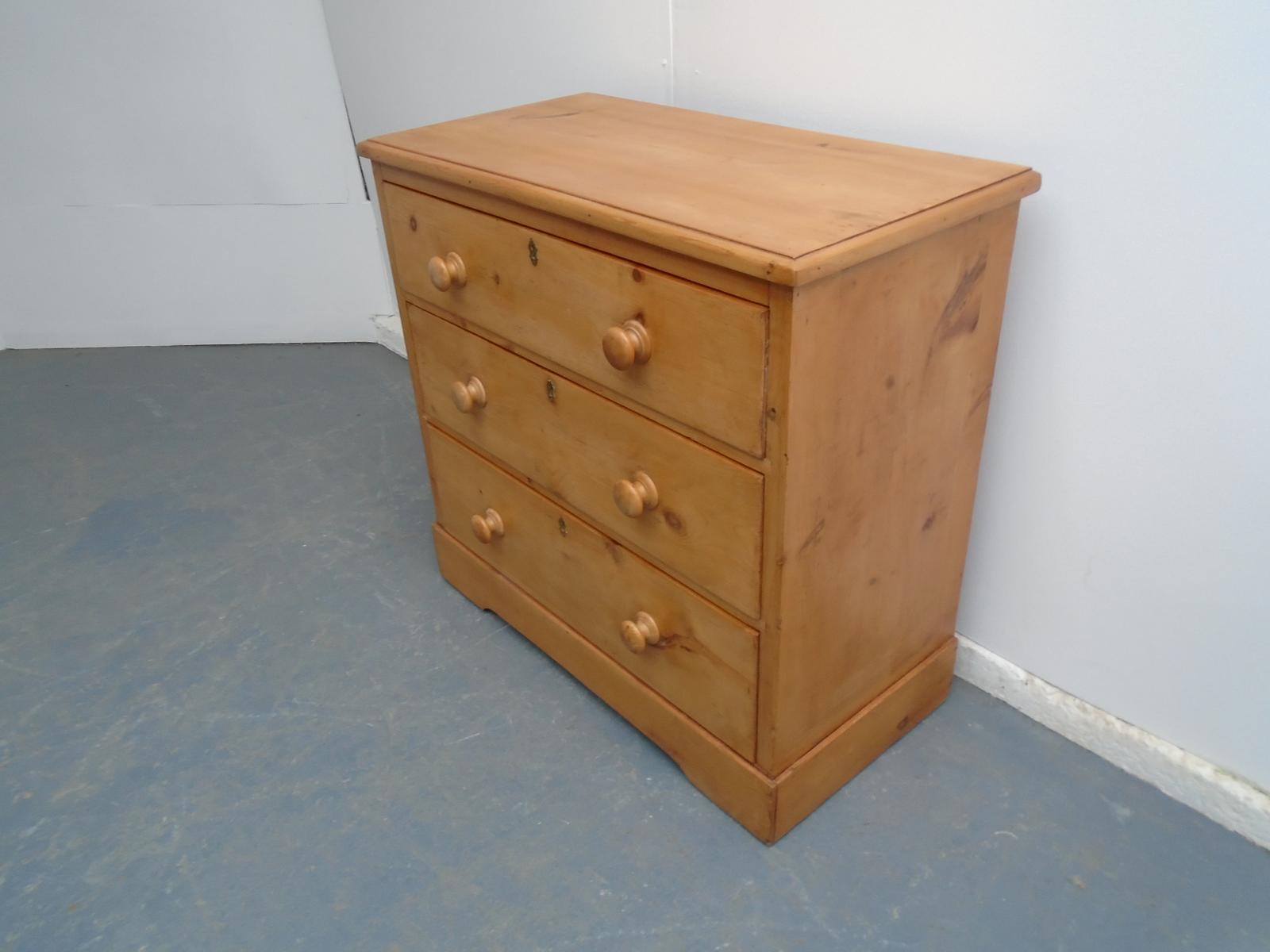 Cracking Victorian Antique Pine Waxed 3 Drawer Small Chest of Drawers