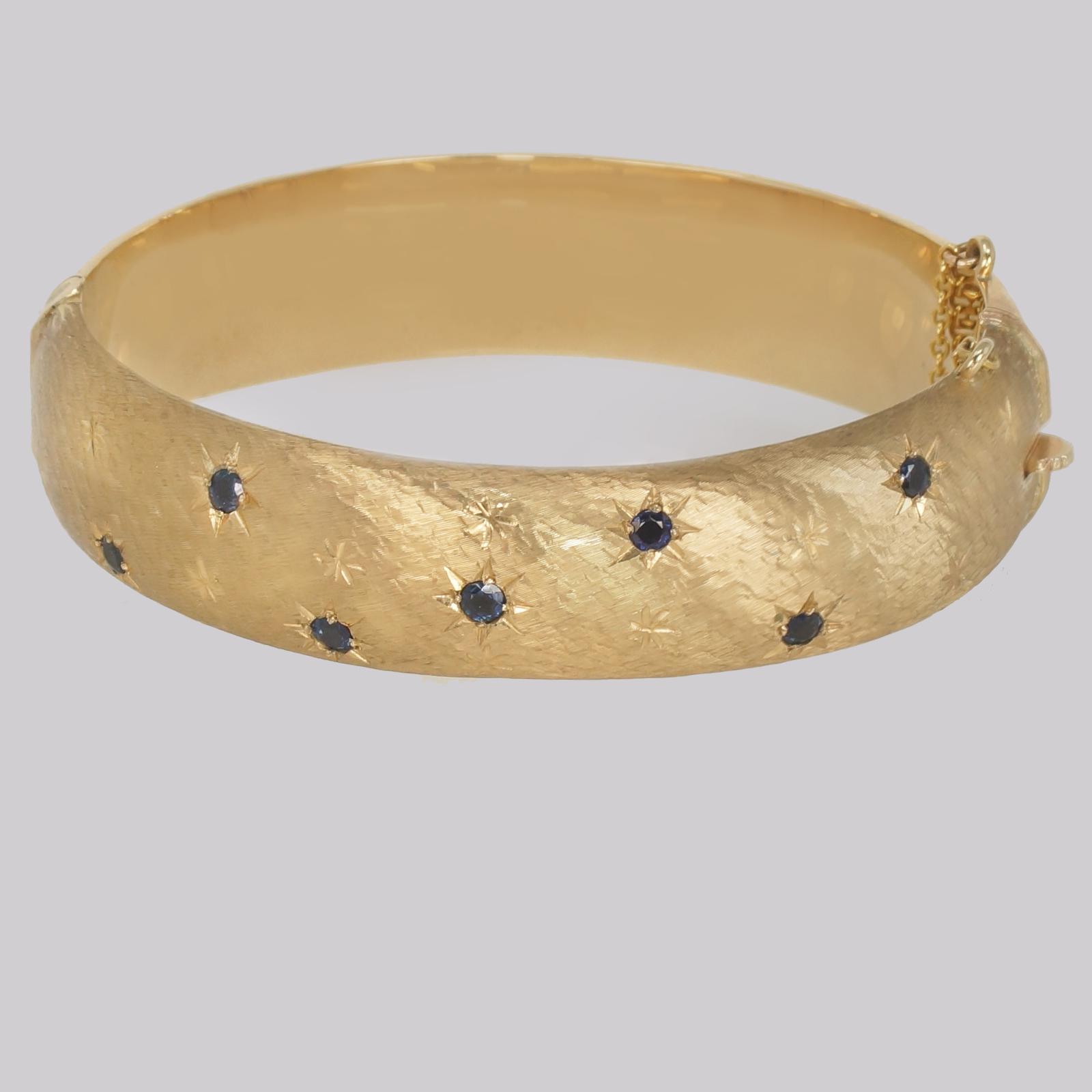 Cropp & Farr Bangle 9ct Gold Sapphire 1960's Wide Heavy Vintage Bracelet