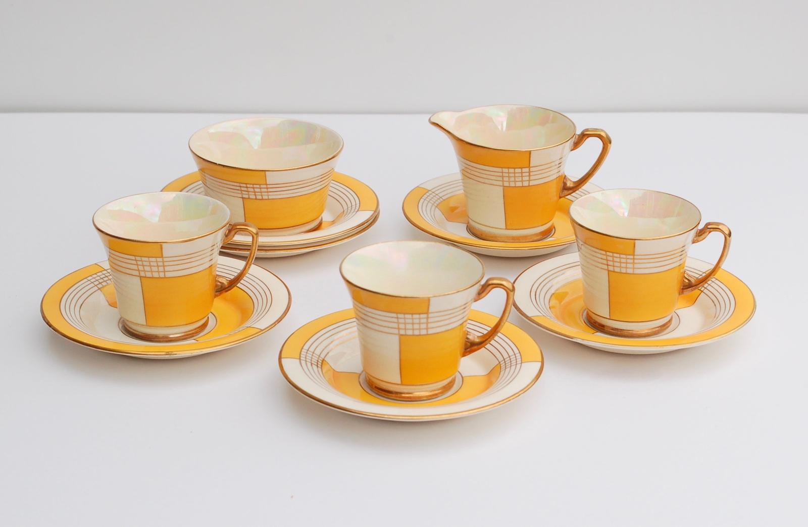 Crown Devon Modane Art Deco Part Coffee Set Yellow Geometric