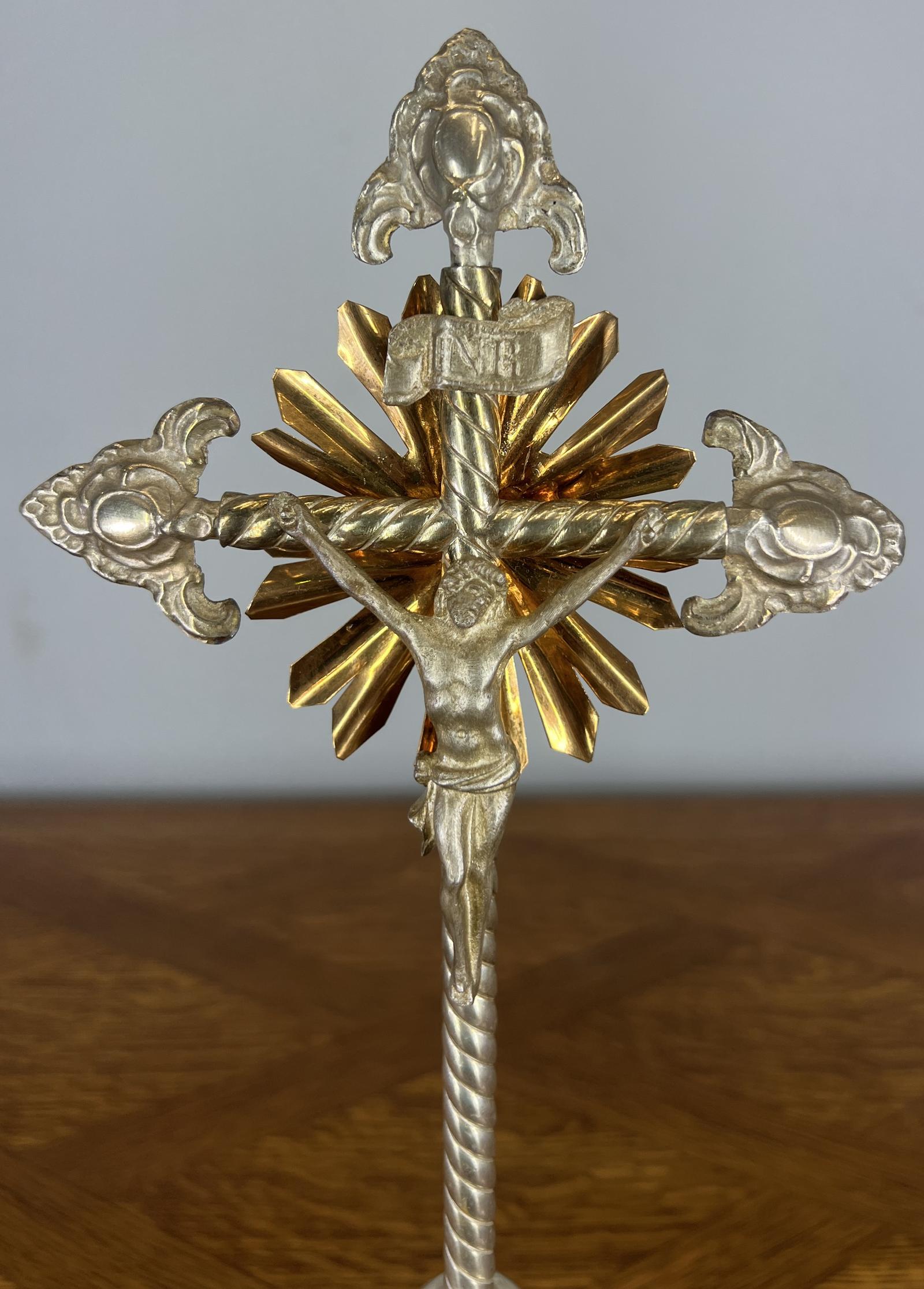 Crucifix Vintage French Style Metal Religious Cross Gilt Detail Stand