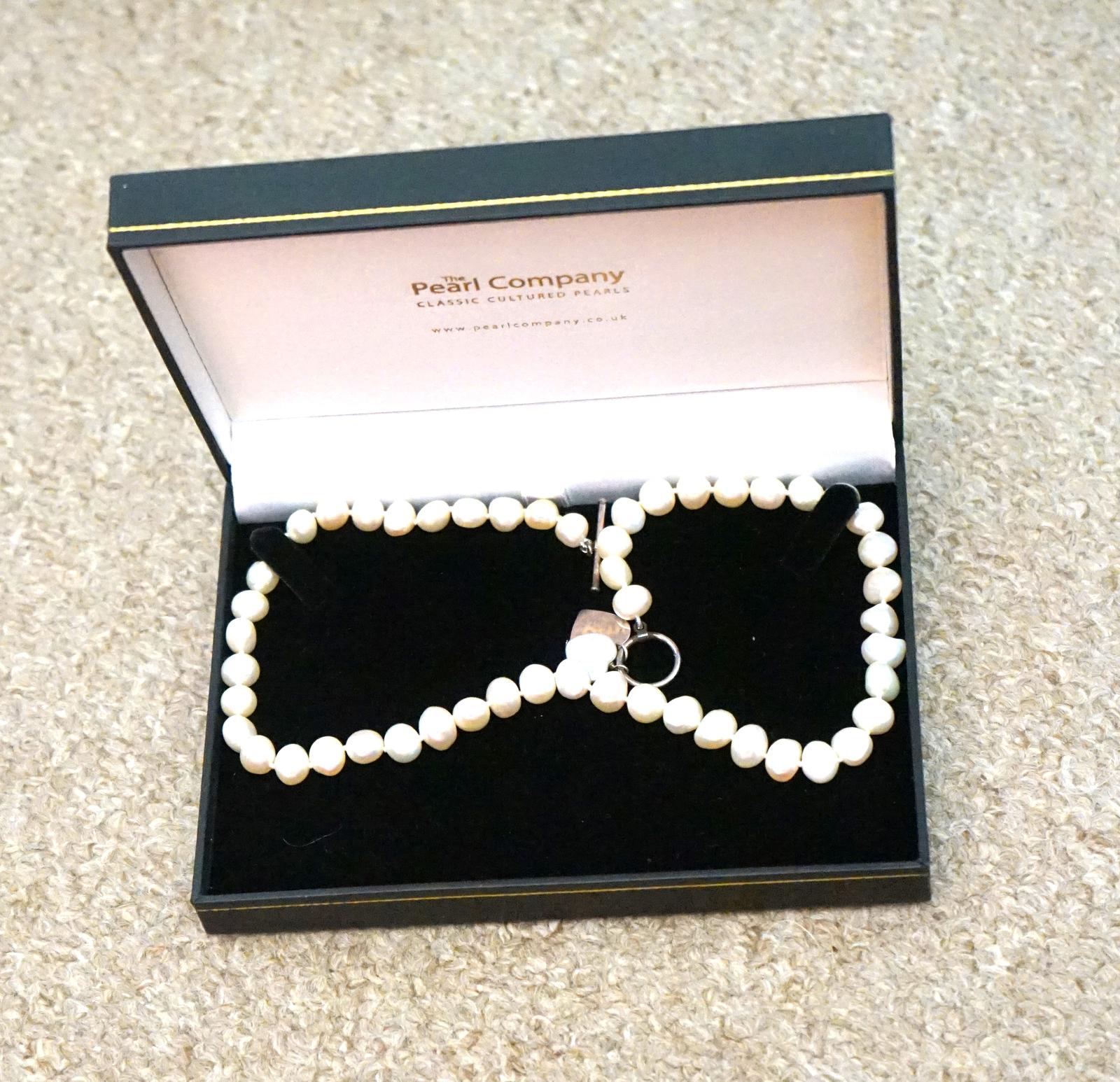 This Cultured One Size Boxed Pearl Necklace with Silver Toggle Closing - Boxed is located in East Sussex, United Kingdom