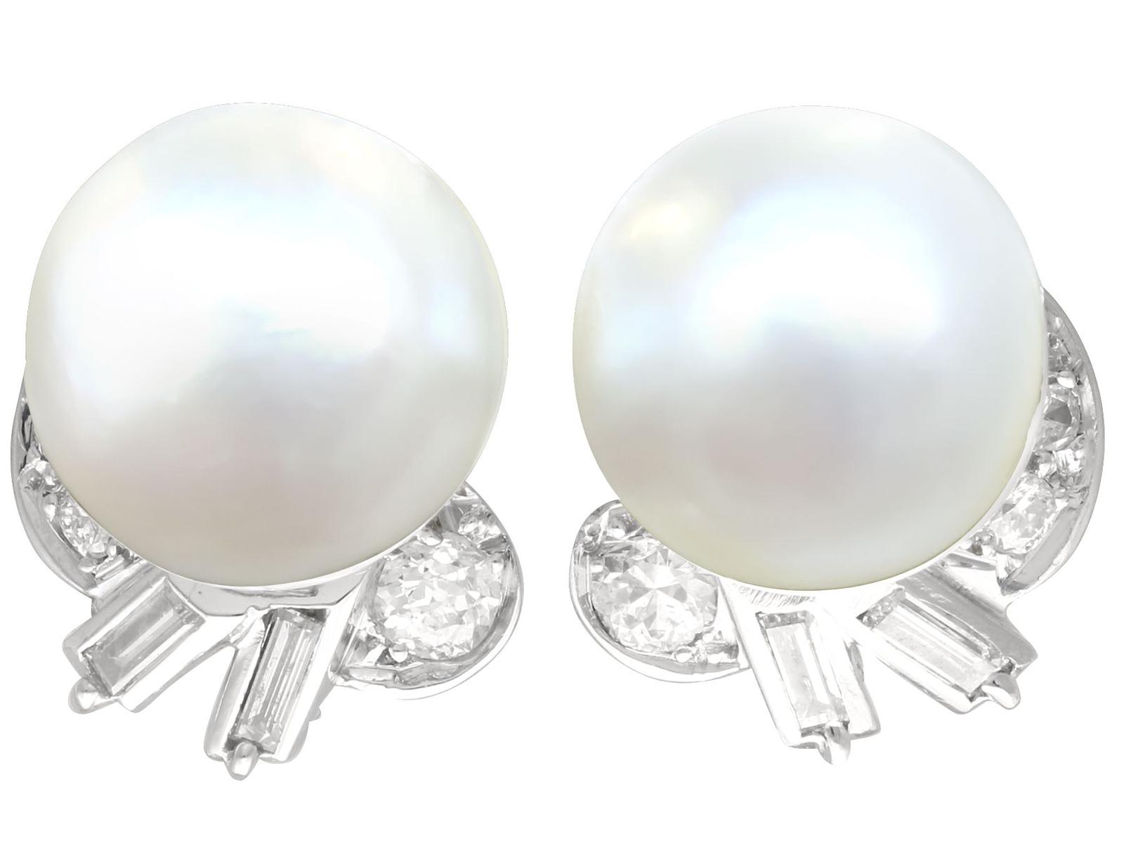 Cultured Pearl & 1.10ct Diamond, Platinum Clip on Earrings c.1930 (1 of 9)