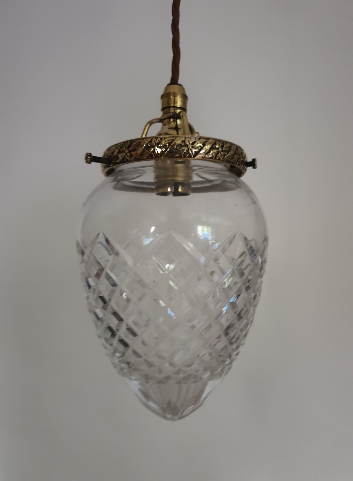 Cut Glass Crystal Ceiling Light with Decorative Polished Brass Gallery, Rewired