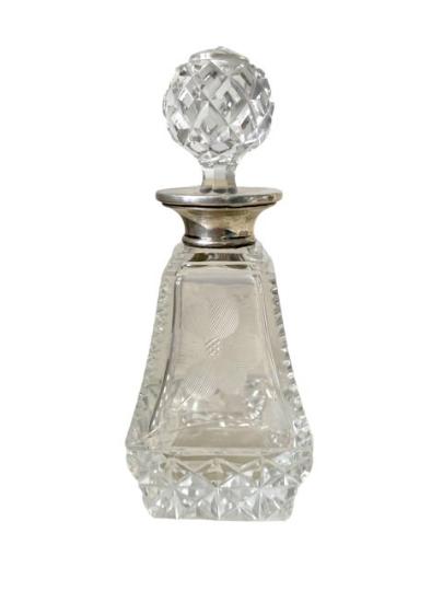 Cut Glass Perfume Scent Bottle Sterling Silver Collar London 1932