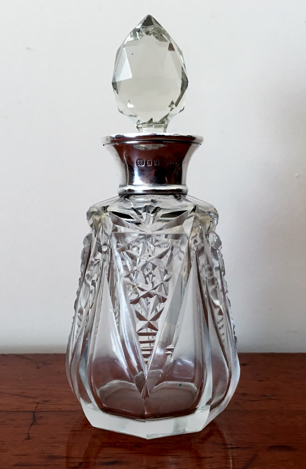 Cut Glass Scent Bottle with Silver Collar, London 1926, H Pidduck & Sons