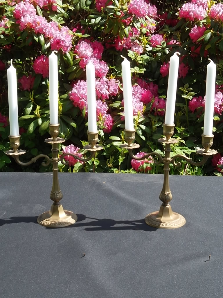 Cute Pair of Vintage French Brass 1960s Candlesticks