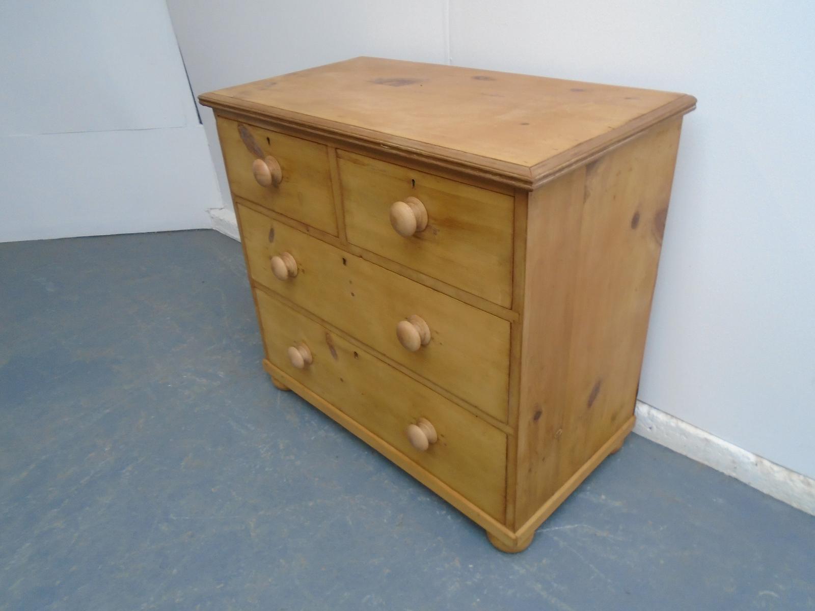 Cute Small Low Victorian Antique Pine Waxed 4 Drawer Chest of Drawers