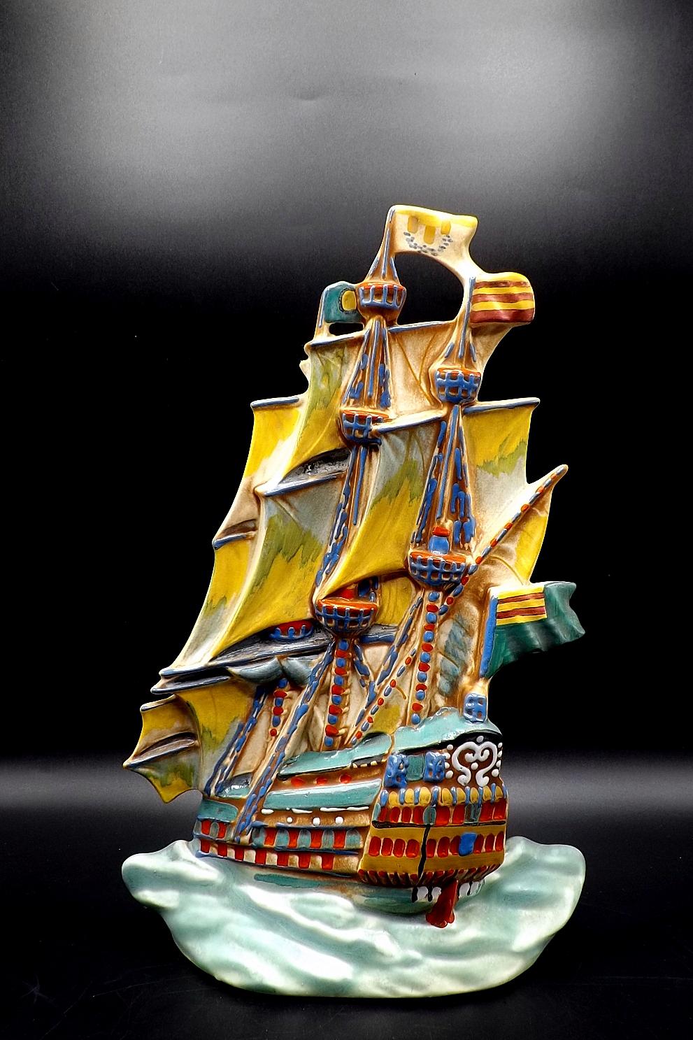 Czechoslovakian Art Deco Wall Plaque / Free Standing Galleon - Ditmar Urbach