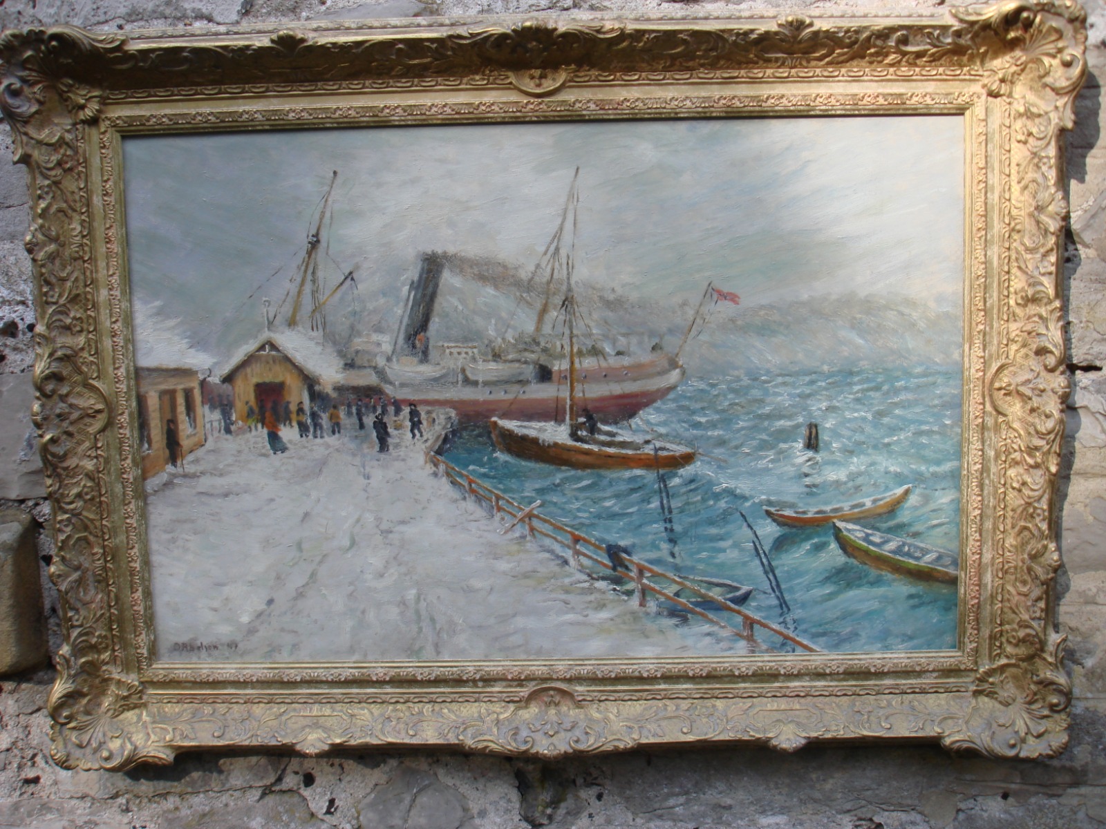 D. Abelson. Stormy Winter Harbour Scene