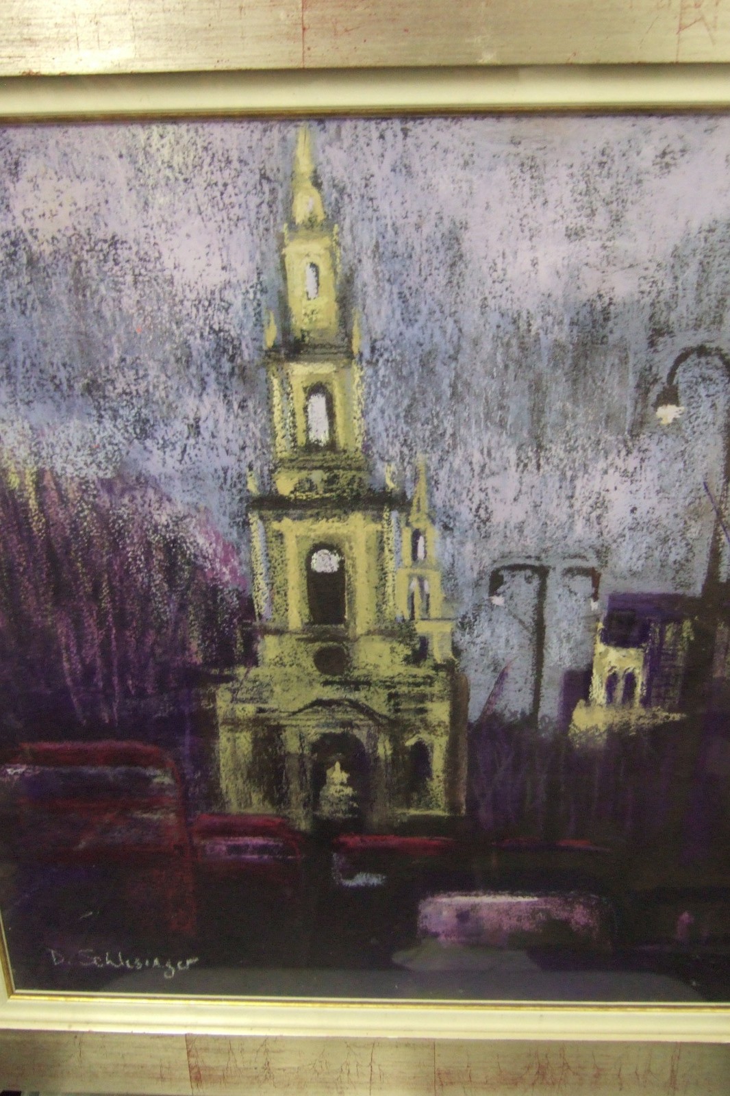 Dan Schlesinger - Pastel of St Clement Dane's Church, London