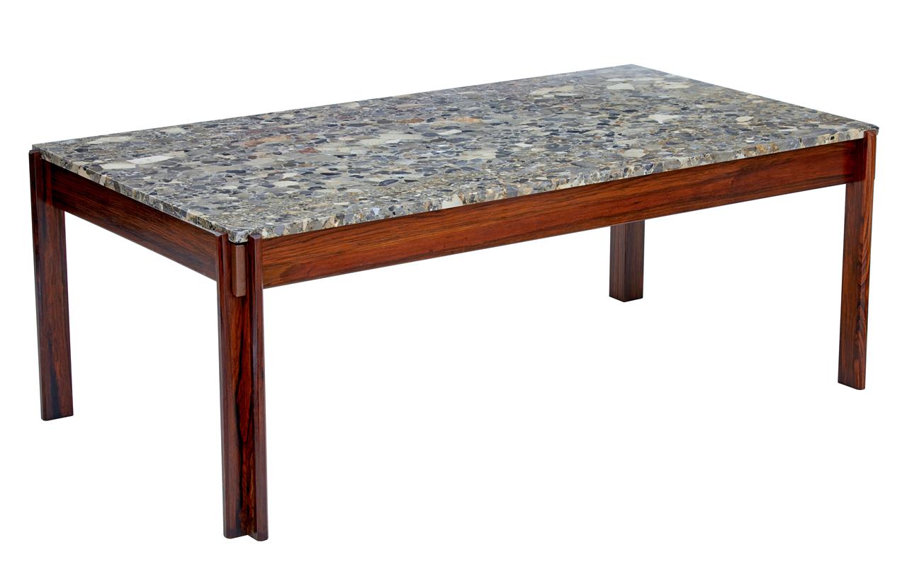 Danish 1970's Rosewood Marble Top Coffee Table (1 of 1)