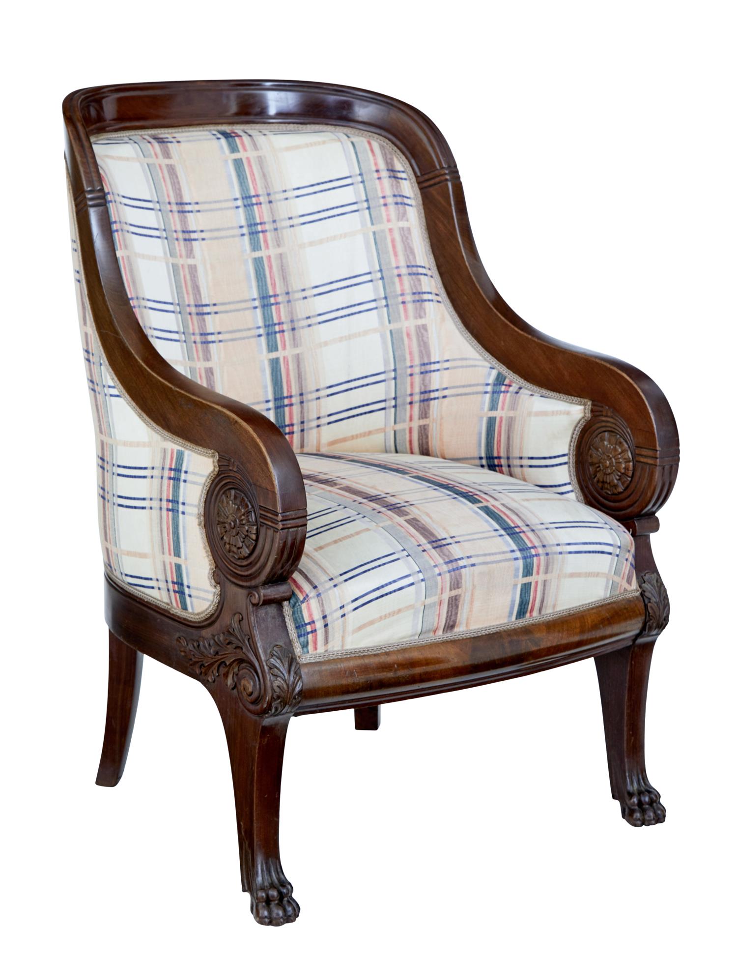 Danish 19th Century Carved Mahogany Armchair in the Biedermeier Taste